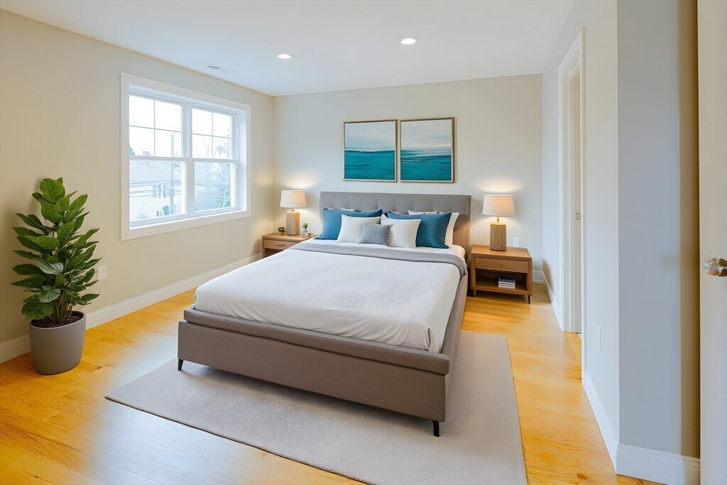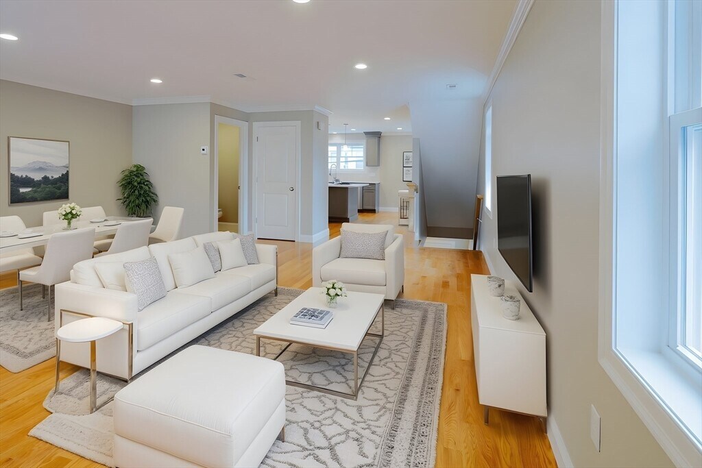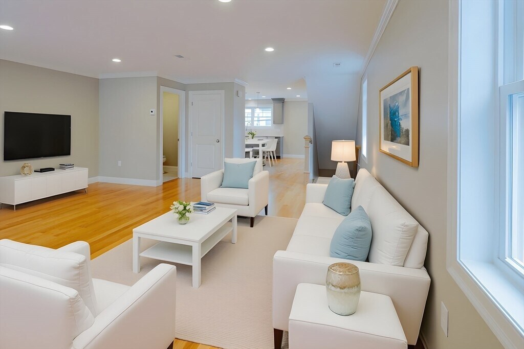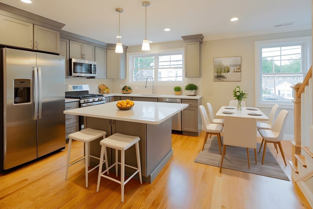 Want your very own full bathroom in every bedroom,you come to the right place!. This 3 bed and 3.5 bath townhouse with garage set in the heart of vibrant downtown Waltham with all it has to offer! Close to Moody Street's outdoor dining on restaurant row. Level one bedroom can convert office space with wet bar for work from home with en-suite bath or use as a 3rd bedroom. Level two features an oversized living room with sliding door to Juliet balcony,a contemporary kitchen with gray shaker style soft close cabinets,quartz countertops/island,gas range and Stainless appliances plus a half bath. Level three reveals two large bedrooms with walk-in closets and have their own en-suite tiled baths plus the laundry. Hardwood floors thru-out the home. Energy efficient natural gas heat/A/C utilities plus Xtra storage on every floor. See attached Matterport! Minutes to the commuter rail and express bus to downtown Boston and Routes 128/90/2. Guest parking available as well MLS# 73447329
