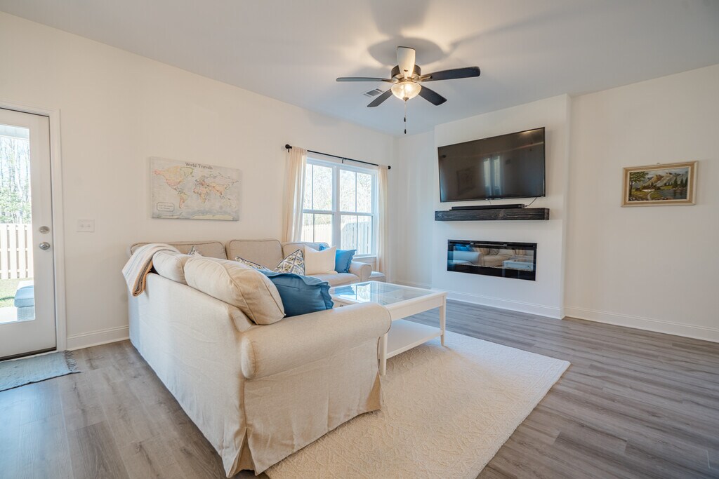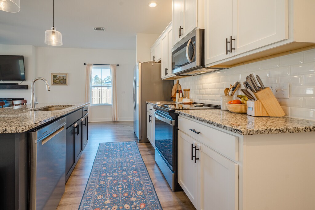 Looking for a modern and spacious rental property? Look no further! The Lincoln plan in Alder Grove offers a fantastic opportunity to enjoy coastal living in Liberty County, just minutes from Exit 76 of I-95 and Ft. Stewart. This 3-bedroom, 2.5-bathroom patio home features an open-concept living area, perfect for both relaxation and entertaining. As you enter the home, you'll be greeted by a bright and airy kitchen that flows seamlessly into the dining and family rooms, complete with an electric fireplace. Step outside to the fully fenced backyard, offering privacy and space to enjoy your covered patio – perfect for outdoor living. The fully equipped kitchen boasts granite countertops, a tile backsplash, and ample cabinet space. It's also conveniently connected to the 2-car garage. A convenient half bath is located on the first floor for guests. Upstairs, you'll find two generously-sized bedrooms, a laundry room, and a hall bath with a sleek granite vanity. The primary suite is a true retreat, featuring vaulted ceilings, a private bath with a dual granite vanity, a soaking tub, and a separate tile shower with a pan insert. A large closet provides plenty of space for your wardrobe. Available for rent starting May 1st, 2026, this home is ready to provide comfort and convenience in a fantastic location. Don't miss out – contact us to schedule a tour today!