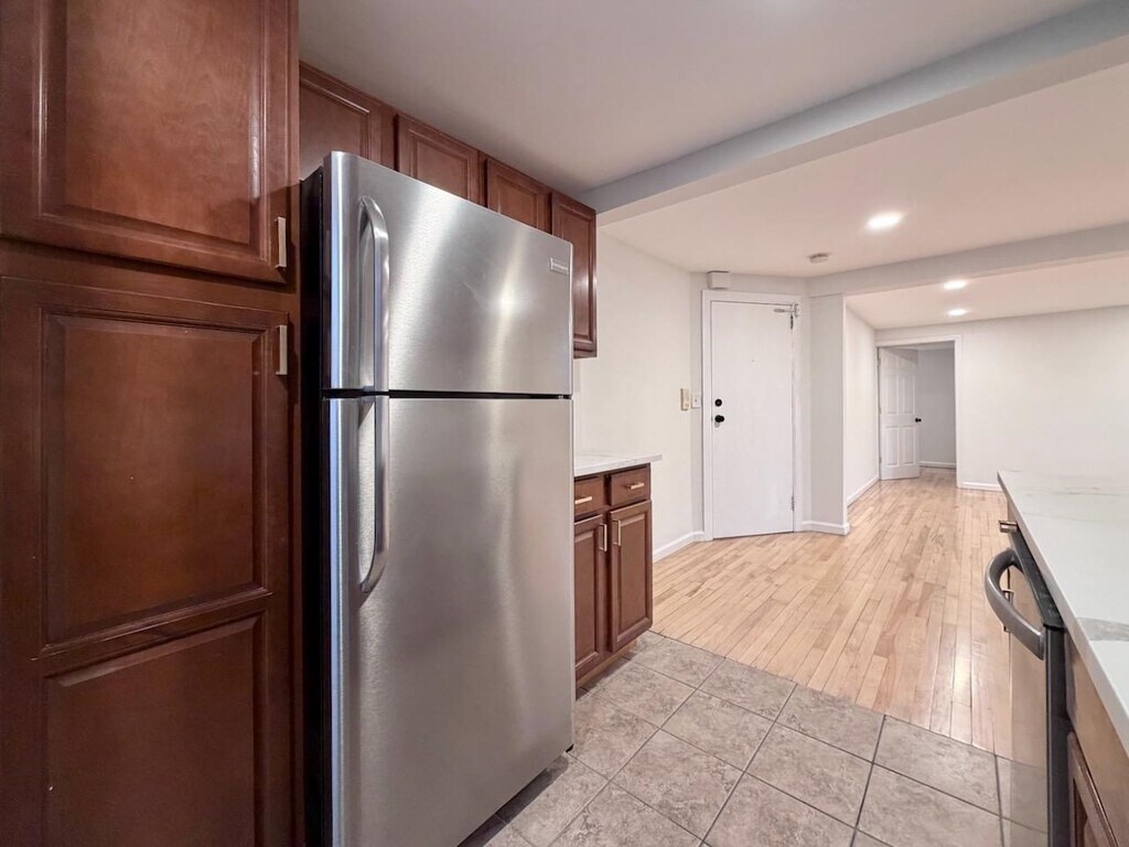Located in a fantastic Downtown Jersey City location near the Grove St path station and Hamilton Park, this spacious two bedroom apartment has beautiful hardwood floors throughout. Newer light fixtures and bathroom vanity. The renovated kitchen has stainless steel appliances including a dishwasher, built in microwave, and gas stove. Gorgeous new calacatta quartz countertops and white subway tile backsplash. The corner property brings in lots of natural light with windows on three floors. Only one flight up. Laundry in building is very convenient with the washer/dryer right outside the apartment door! Ask for the 3D tour. Available ASAP!