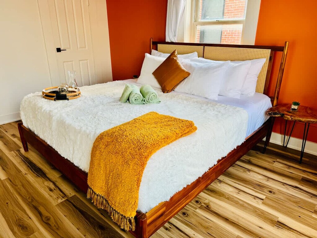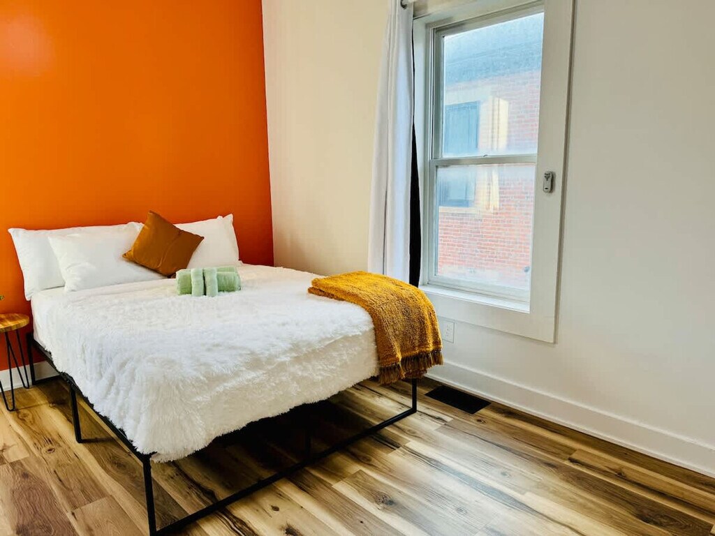 Feel at home in this centrally located 2-bedroom apartment in the Short North District. This duplex home features its own entrance for a completely private space. The apartment is filled with upscale decor and original hardwood floors. The apartment is filled with gorgeous rare plants, upscale decor, and original hardwood floors. It features a fully equipped kitchen with quartz countertops, high-speed internet, a 55-inch Smart TV in the living room and additional Smart TVs in all bedrooms, tower fans and white noise machines, a hair dryer, a handheld steamer, and a dryer. Pets are welcome for a fee of $40 per pet per night, up to $600 per pet for the entire stay. Street permit parking for one vehicle is available, and additional street permit parking is available for $10 per additional vehicle for your entire stay. The location is perfect for enjoying Short North, with many great restaurants and bars right on North High Street. It's a short walk to the Short North District, the Greater Columbus Convention Center, and Nationwide Arena Stadium. Ohio State University campus and downtown Columbus are less than a mile away. The Kroger Food Market is also less than a mile away, and Nationwide Children's Hospital is an 8-minute drive. Some city or neighbor noise is possible due to the central downtown location and shared wall with the neighboring unit. Quiet hours are from 9 p.m. to 7 a.m. Breaking any house rule will result in a charge of $500 each. Absolutely no plants in the home are to be moved. No loud music is allowed at any time. No parties, small gatherings, or events are allowed. Smoking, marijuana, firearms, illegal substances, or any illegal activity are not allowed on the property. No additional unregistered guests are allowed. Furniture is not to be rearranged. Tampering with exterior surveillance, noise monitors, and smoke sensors will lead to immediate cancellation with no refund, as well as a $300 violation charge. Any late check-out will result in an additional charge of $100. Includes a dedicated workspace. Registration Number: 20232028 [SI]