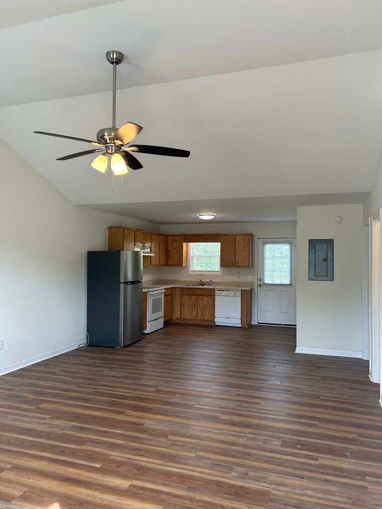Nice duplex home near the lake with easy access to downtown Winchester. Two bedrooms and one bath. 10 foot ceiling in living area. Washer/dryer hookups. Master bedroom has walk-in closet. Stainless steel fridge. New ceiling fans in living room and both bedrooms. New kitchen lighting. New faucets. New toilet. New blinds. Nice patio area. No carpet anywhere. This floorplan can work for roommates or a family. 12 month lease. Rent is $1225/mo. Deposit is $1225. Income must be 3x the rent. Application, credit check, background check are completed online. Pets up to 35lbs. are allowed by approval only and with pet rent of $25/mo per pet. No large, loud, or aggressive breeds of dogs.