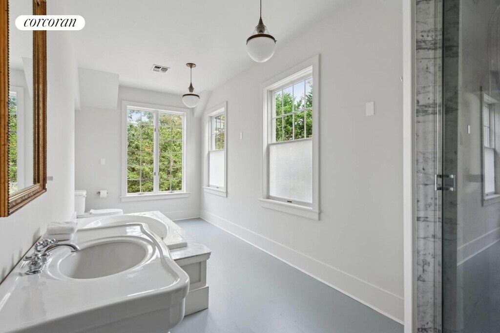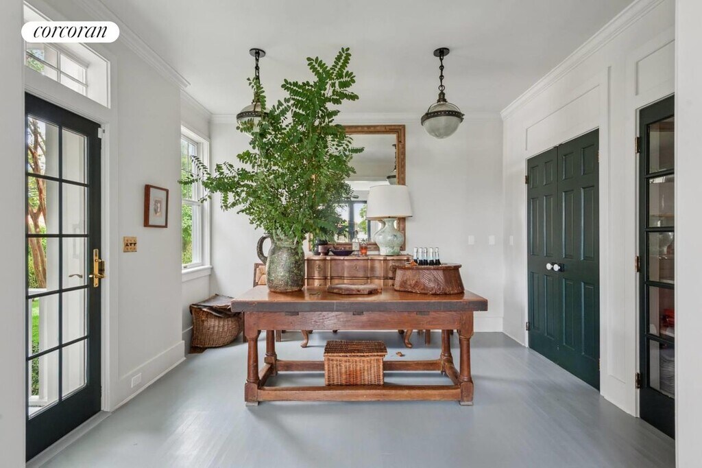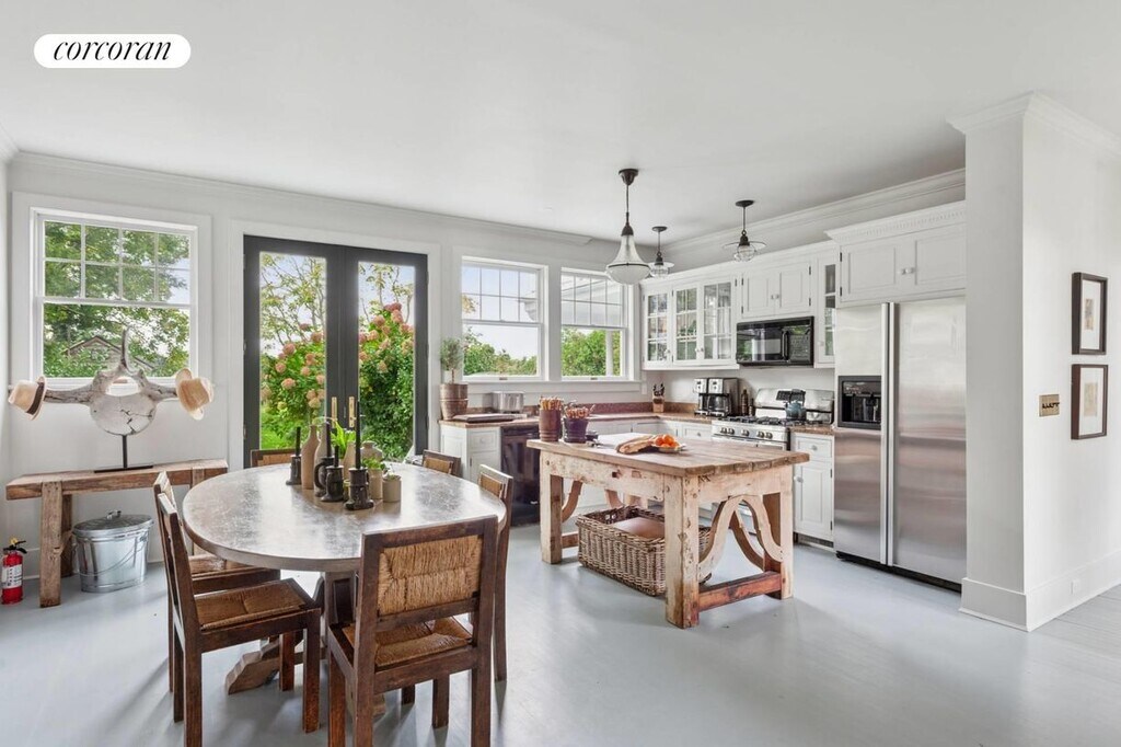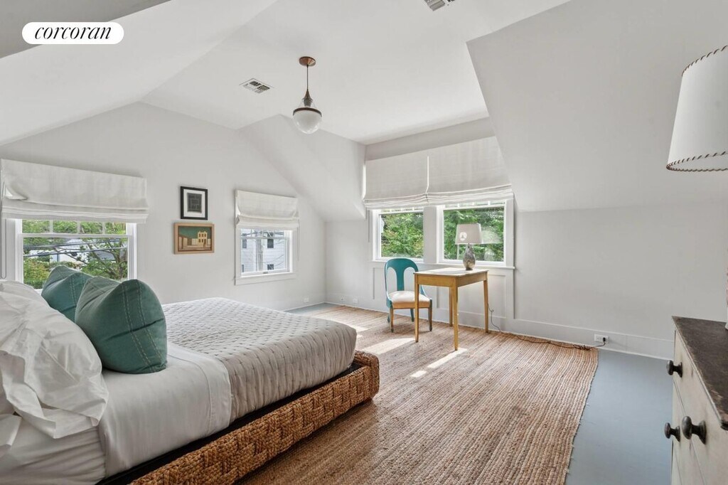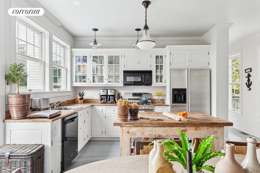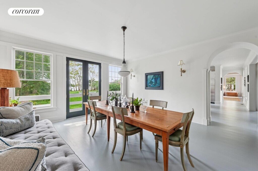 On one of the most coveted streets in Sag Harbor Village, this waterfront residence embodies a rare balance of sophistication and ease-a home where design and light converse in perfect harmony. Every room reveals a thoughtful hand: painted wood floors that feel timeworn yet refined, millwork that frames the play of sun and shadow, and spaces that invite both gathering and quiet reflection. Within its 4,000+ square feet, the home unfolds with natural rhythm. The living room, anchored by a wood-burning fireplace and coffered ceiling, opens through French doors to the harbor beyond. A dining room washed in soft light encourages long, lingering meals, while the kitchen-an artful blend of patinaed woods, stone, and crisp cabinetry-captures the essence of coastal simplicity elevated by craftsmanship. A den, office, and multiple sitting rooms offer places of retreat, each with its own character and purpose. Upstairs, five serene bedrooms include a primary suite that feels suspended between land and water. Its private terrace overlooks the harbor, a front-row seat to morning light and breathtaking sunsets. Throughout, textures and tones are deliberately restrained-allowing the architecture, the light, and the views to take center stage. Outdoors, the design extends seamlessly. A deep covered porch and bluestone terraces lead to a 20 x 40 heated gunite pool, surrounded by lawn and lush gardens that flow gently toward 100 feet of private waterfront and a private dock with power and water - perfect for a morning paddle or an evening cruise beneath a painted sky. A separate guest cottage additional options for you and your guests to rest, reflect, and enjoy. Every element of this home, from its understated palette to its handcrafted finishes, speaks to enduring quality and a sense of calm. This is a property that feels at once timeless and alive-a Sag Harbor retreat where craftsmanship meets serenity, and every day ends in magic.