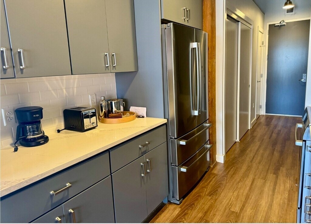 Experience the best of city living in this sun-splashed brick-and-beam residence,perfectly situated in the heart of Fort Point and steps from the Seaport. Soaring 13+ foot ceilings,exposed beams,and hardwood floors create a warm,open feel throughout. Oversized east-facing windows bathe the living area in natural light,while the custom chef’s galley kitchen features abundant storage,quartz countertops,a subway tile backsplash,and a stainless-steel appliance suite.Enjoy thoughtful details like in-unit laundry and generous closet space,plus a shared roof deck perfect for soaking up the summer skyline. Just moments from the neighborhood’s vibrant shops,fine dining,and the scenic Boston Harborwalk,this home offers the perfect blend of historic charm and modern urban convenience the ideal pied-à-terre for city living. MLS# 73453530