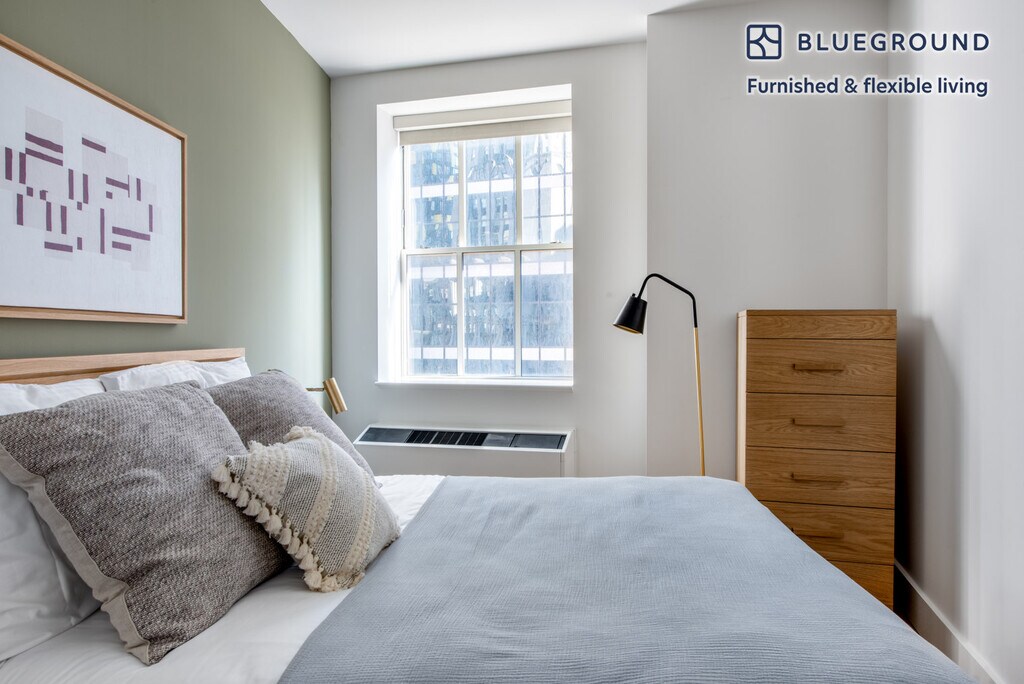 Show up and start living from day one in New York with this roomy one bedroom Blueground apartment. You’ll love coming home to this thoughtfully furnished, beautifully designed, and fully equipped Financial District home. (ID #NYC501) The advertised rate of $3,760/month is the lowest available price, based on a 1 month(s) and 25 day(s) stay with a move-in date of November 22, 2025. If you’re looking for a 1-year stay, the rate is $5,800/month. Rates vary depending on the duration of stay, season, and other parameters. For exact pricing and additional pricing components, please visit our website and enter your desired move-in and move-out dates. The rate is applicable when billed upfront; it can be higher if billed in multiple payments. Brokers are welcome to reach out. Were you looking for an unfurnished lease? Try Blueground instead and upgrade from unfurnished to furnished living: - Furnished at rates comparable to unfurnished - No setup or furniture costs - save thousands - Move-in ready - save time, just bring your suitcase Designed with you in mind Gorgeous furniture, fully equipped kitchen, smart TV, and a premium wireless speaker are just a few of the amenities you’ll find inside this one bedroom apartment. Ideally located in New York, you’ll find a lot to love outside as well. When you’re ready to relax, you’ll be happy to discover every Blueground bedroom comes with superior quality mattresses, luxury linens, and cozy towels. We handle everything so you can simply show up and start living. Sleeping arrangements Queen Bed, 63in/160cm Amenities Building amenities unique to this one bedroom apartment include an on-site: - Doorman - Dryer in building - Elevator - Game room - Washing machine in building - Lounge - Library - Media room - Pets allowed - Playroom - Rooftop BBQ Arrival and ongoing support The entire apartment is yours to enjoy! Throughout your stay, you’ll have access to our Client Experience team through the Blueground App. You can schedule additional cleanings, submit maintenance requests, and view our neighborhood recommendations with just a few taps. We’ll share all details upon confirmation of your stay. Ideally Located This furnished apartment is located in the Financial District, also known as FiDi. Home to Wall Street, One World Trade Center, the South Street Seaport, and Bowling Green it is a constant hub of activity. During the week the sidewalk is always bustling and the restaurants are filled with professionals. The glittering skyscrapers and well-known landmarks make this one of the city’s most recognizable and historic neighborhoods. By subway, Times Square is about 20 minutes away. Other things to note Building amenities may have an extra cost. This Blueground apartment has flexible lease options, allowing you to book it for one month, a year, or more. Pets are welcome, though weight limits and breed restrictions apply and may incur fees. Brokes CYOF. We take great pride in ensuring every photo displayed is shot in our own units with our actual furnishings. That said, we regularly refresh our decor and furniture arrangement, which may differ from what’s pictured. [GO]