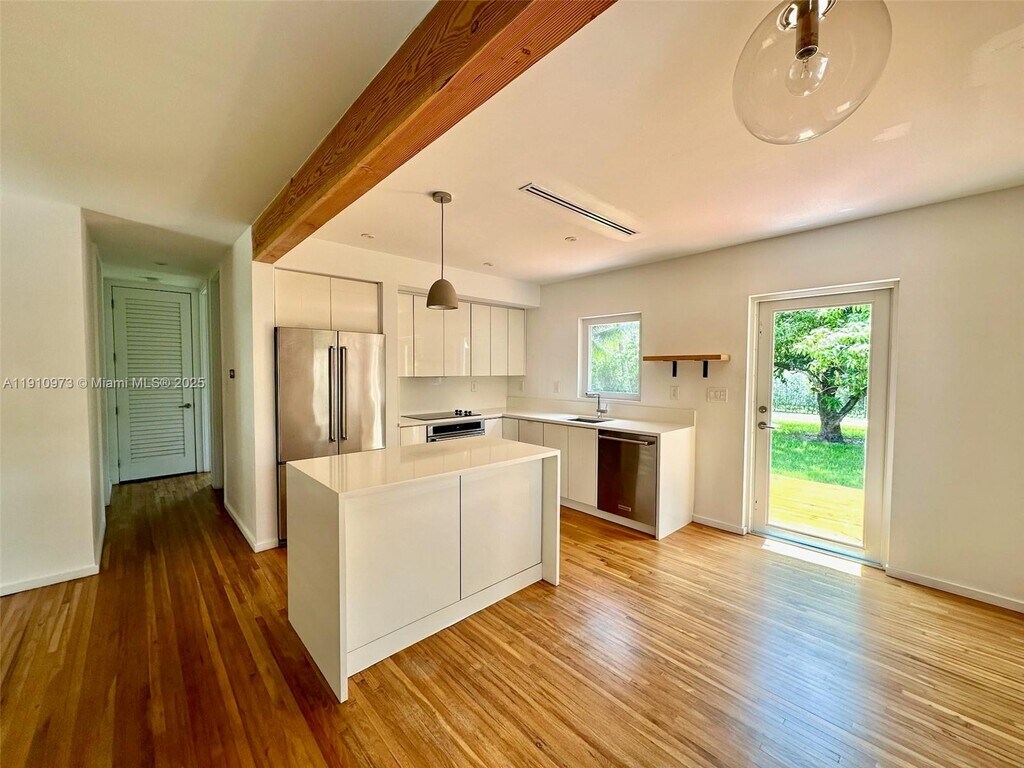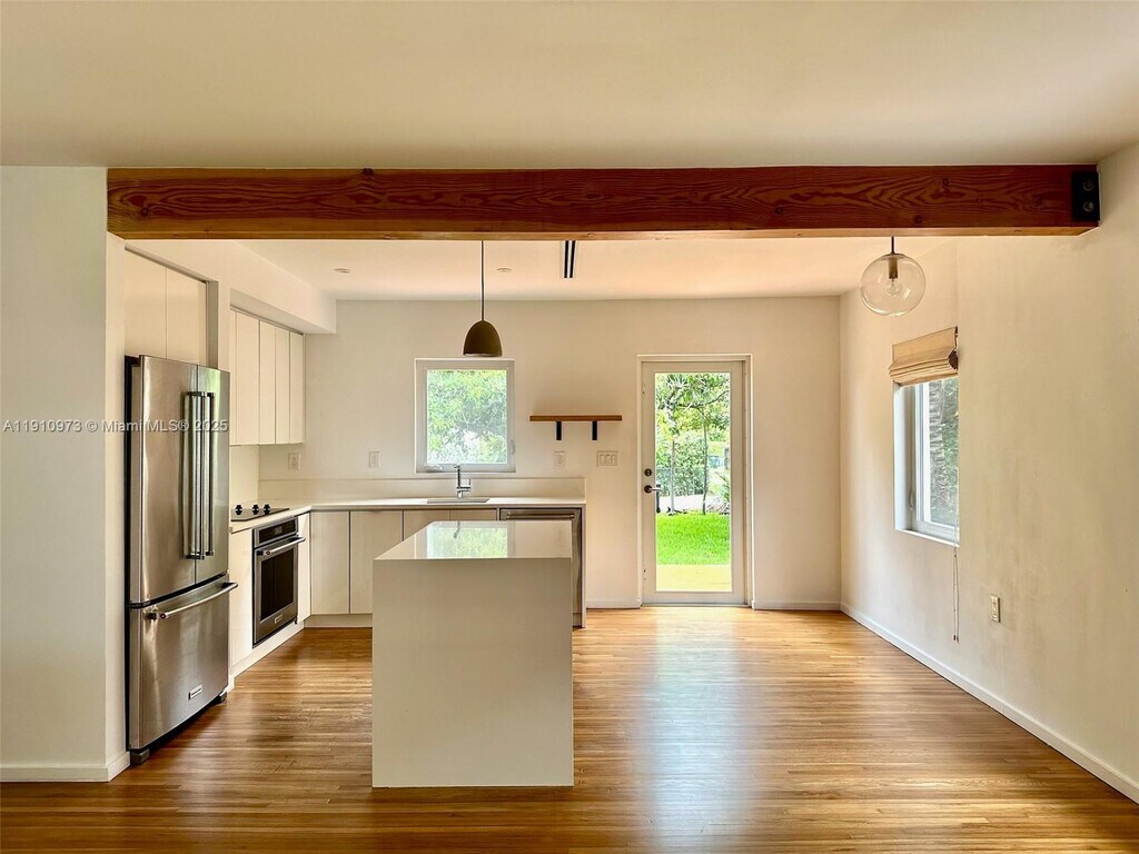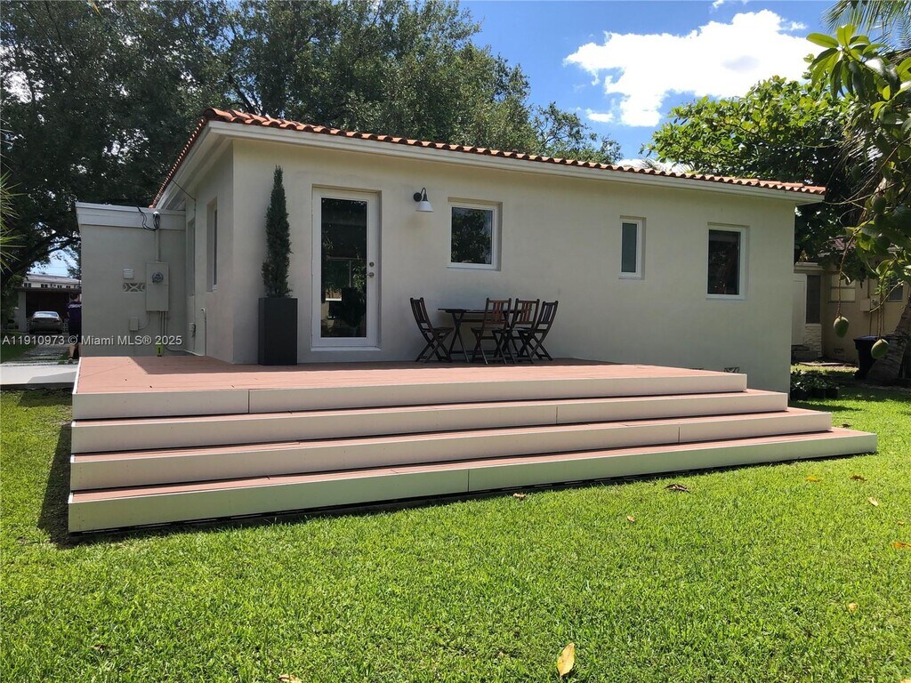 Seize the opportunity to reside in this exquisitely upgraded home on a spacious lot in Miami Springs. This residence features refinished original oak wood floors, an open-concept kitchen with new stainless steel appliances, quartz countertops, and modern cabinetry. Enjoy the convenience of a washer and dryer, new A/C, and updated plumbing and electrical systems. Each bedroom includes built-in closets, and the bathroom is fully renovated. The home also has hurricane impact doors and windows. Outside, find a storage room, front and back decks, a mango tree, and several coconut trees. Schedule your private showing today! Note: Lawn care is the tenant's responsibility, $60 every two weeks.