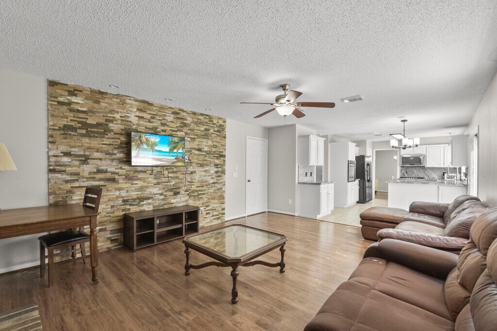 Beautifully updated and move-in ready! This inviting home features fresh interior paint,stylish finishes,and an abundance of natural light throughout. The remodeled kitchen offers custom cabinetry,granite countertops,stainless steel appliances,and a dry bar—perfect for everyday living and entertaining. The living area includes a cozy fireplace,brick accent wall,and wide picture windows. The spacious primary suite provides a peaceful retreat with plush carpet and soft natural light. Enjoy a private,tree-shaded backyard ideal for relaxing or hosting gatherings. All appliances—including refrigerator,washer,and dryer—are included in the lease. Neighborhood amenities include a scenic lake,park,tennis courts,and a refreshing pool. Conveniently located near shopping,dining,and major highways. MLS# 33333917