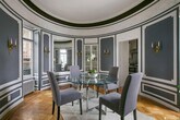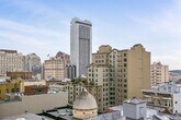 Live in a piece of SF history at The Marchbank, designed by noted Beaux Arts architect James Francis Dunn. This unique pristine upper-floor 2-bed/2-bath view flat combines stunning old-world charm & modern amenities. Has a flexible living/bedroom area with large picture windows & a decorative fireplace, built-ins. Amazing circular dining room/parlor. Gourmet kitchen: marble counters, stainless appliances + gas range & hood. Private view bedroom with large organized closet. En-suite bath with marble: dual vanities & walk-in shower. 2nd bath of dining parlor with a jetted tub. This unit has high ceilings, great light, + city & hill views. In-unit laundry. Visual intercom system. Elevator (being replaced). 1 flat per floor. Well-run, established building. 100 Transit Score