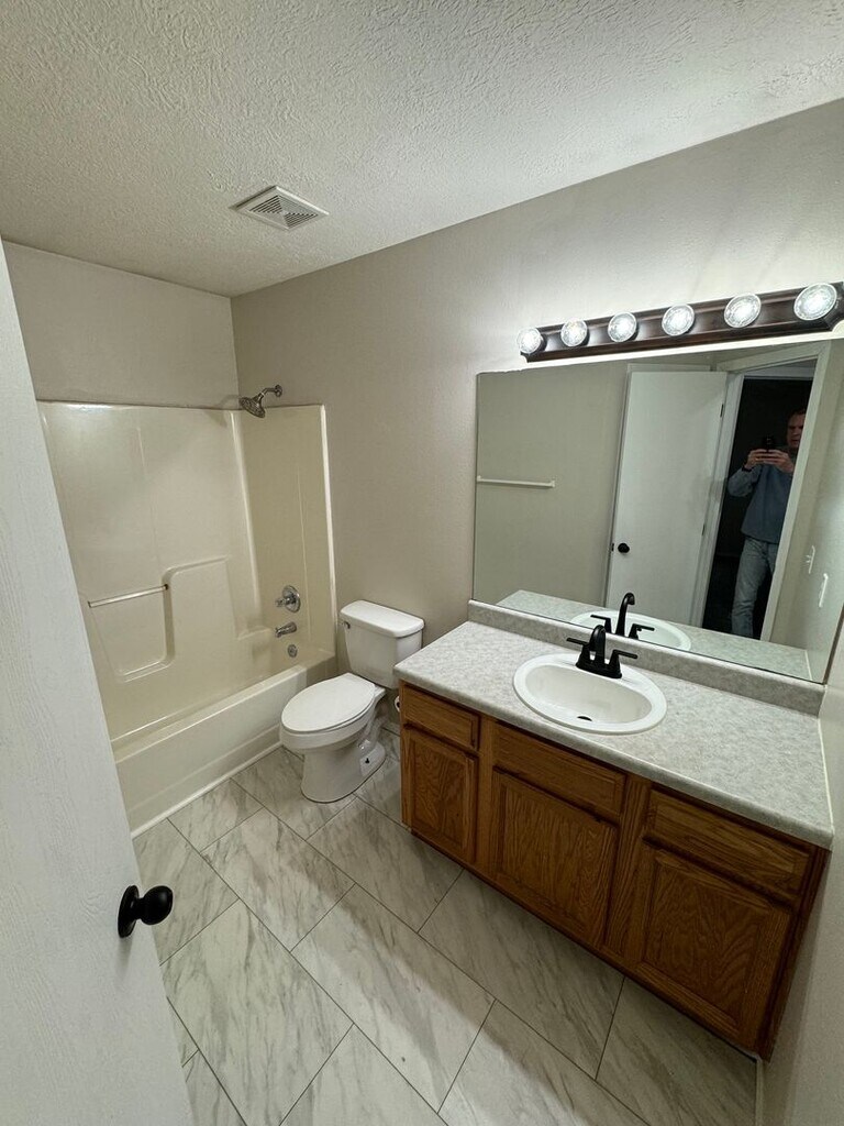Move in ready! 3 bed, 2 bath, 2 car garage with fenced in back yard. Small pets considered. Must have proof of employment.