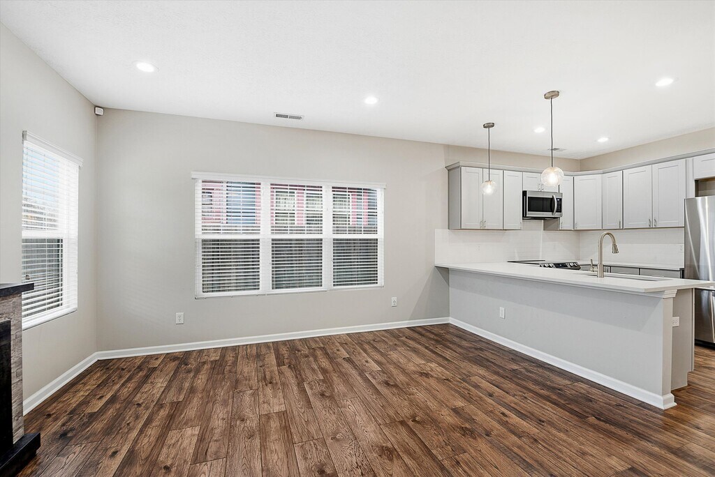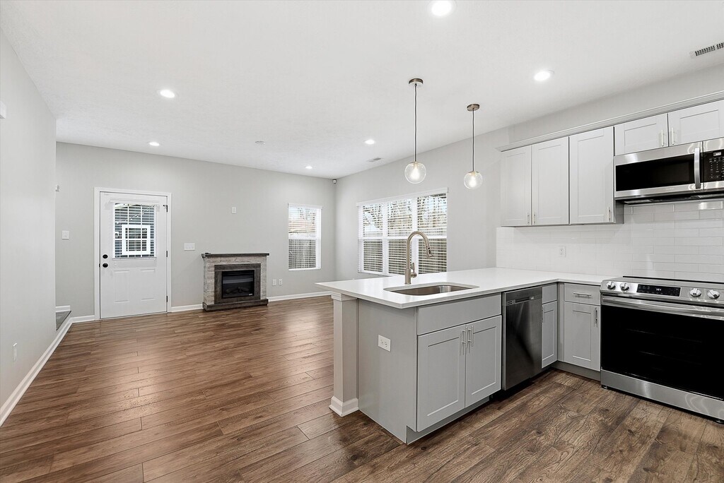 Welcome to 630 N Hamilton Ave, a modern and beautifully finished home tucked near historic Woodruff Place with unbeatable access to downtown Indy and the excitement of Mass Ave. This move-in ready property blends comfort with convenience in one of the city's most desirable urban pockets. Inside, you'll find thoughtful design throughout. The family room offers a warm gathering space centered around a fireplace. The kitchen includes stainless steel appliances, quartz countertops, and an open layout that supports cooking and hosting with ease. A dedicated home office provides flexibility for work or quiet study. Upstairs, the primary suite delivers a true retreat with a double sink vanity, a luxurious tile shower, and a generous walk-in closet. Two additional bedrooms and a second full bath complete the upper level, along with a convenient main-level full bath. Step outside to enjoy a private fenced backyard with space for relaxing or entertaining. A two-car garage adds everyday ease and secure parking. This home is ready for its next resident to enjoy both modern living and an exceptional location.
