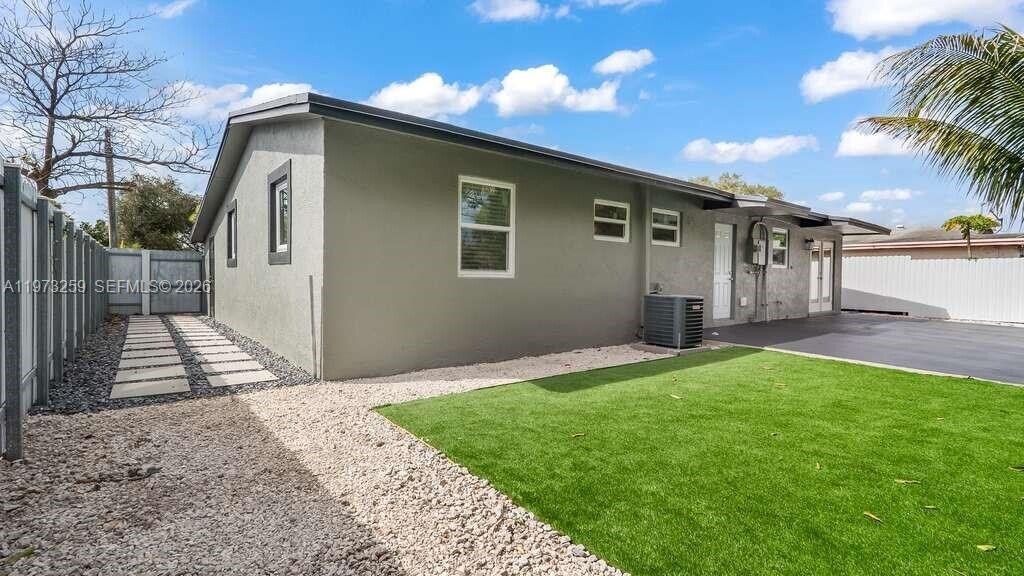 Welcome home to this fully renovated single-family residence offering three bedrooms and two bathrooms, perfectly blending modern comfort with tropical charm. This move-in-ready home features a bright, open layout with tile flooring throughout and a renovated kitchen equipped with new stainless-steel appliances. Enjoy peace of mind with updated plumbing, impact windows, and a fairly new roof. The beautifully landscaped backyard includes a variety of mature fruit trees, perfect for relaxing or entertaining. Additional highlights include a huge utility room with new washer and dryer, a separate storage room and a circular driveway. Located in an established neighborhood close to schools, shopping, and major highways. No HOA required. Section 8 vouchers preferred. MLS # A11973259