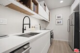 Furnished retreat at Library Court with direct access to a tranquil open courtyard. This thoughtfully furnished 1-bedroom, 1-bath condo offers a modern, turnkey living experience in the heart of Downtown LA. The spacious, open-concept design blends sleek lines with warm, organic touches highlighted by light wood flooring, recessed lighting, minimalist furnishings, and curated details throughout. The streamlined kitchen features white cabinetry, a wine nook, and an oversized island with bar seating for four. The bedroom area enjoys privacy and style, complete with a plush bed, accent wall, and designer lighting. Floor-to-ceiling windows and frosted glass panels filter in natural light while maintaining privacy. Additional features include in-unit laundry, a stylish black-tiled walk-in shower, central air and 1 assigned parking space. Offered fully furnished and move-in ready, this home is ideal for anyone seeking comfort, convenience, and downtown sophistication in one smart package. ***Some utilities and 1 parking space is included with the monthly rent.*** MLS# 26647173