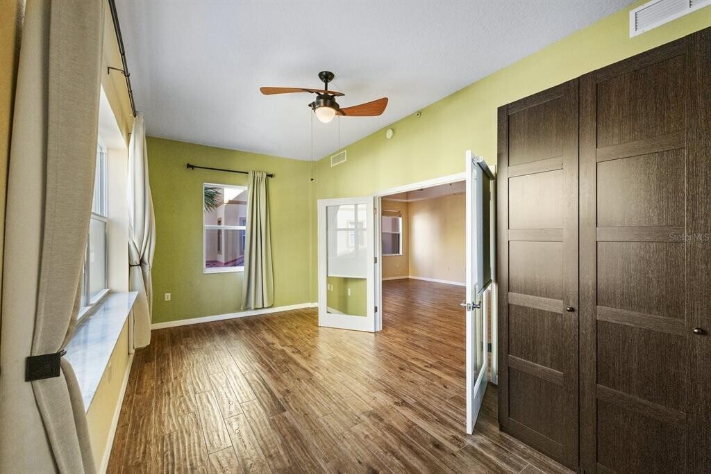 One or more photo(s) has been virtually staged. One or more photo(s) has been virtually staged. Gorgeous,upscale condo in great condition. 9.5 foot ceilings throughout,open and spacious layout,large kitchen with hardwood cabinets and granite counter tops,huge living room / dining room combo,2 comfortable bedrooms and a large (19x9),bright den that can be used as a third bedroom,office,or den. The master bedroom has a walk-in closet as well as a stand-alone closet for additional storage. The ensuite master bathroom has a large tub and walk-in shower,dual sinks,private toilette stall. The tandem two car garage fits 2 cars with extra space to spare. There is also an assigned driveway in front of the garage. The community has ample guest parking outside and inside the gates. The clubhouse includes a small fitness center,kitchen and space for private events. Location is right on the Pinellas Trail and walking distance to everything in downtown: shopping,fitness,post office,restaurants. Only 2 miles from the award winning beautiful Clearwater Beach. MLS# TB8454356
