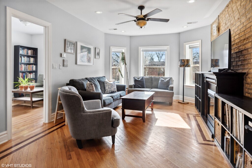 Welcome to 6301 N Richmond Ave Unit 2 in Chicago's West Rogers Park neighborhood. This corner unit 2 bedroom / 2 full bathroom is flooded with natural light all day long! Instantly when you walk in,you are invited in by the living room's full exposed brick wall,large bay windows and a gas fireplace! An open concept flows throughout the home. A large kitchen has everything for an aspiring chef to cook - brand new stainless steel appliances,black granite countertops,maple cherry 42 inch cabinets and an eat in area for three barstools. The primary bedroom is large enough for a queen size bed,and it has a large wall of closets for ample storage. An ensuite bathroom has a marble bath and a jacuzzi tub. The second bedroom is similar in size and a split floor plan for a perfect roommate or work from home situation. In unit laundry included. Lastly,a gracious size back deck is the perfect extension of the indoor and outdoor space. Pet friendly - dogs to be approved MLS# MRD12602526 Based on information submitted to the MLS GRID as of [see last changed date above]. All data is obtained from various sources and may not have been verified by broker or MLS GRID. Supplied Open House Information is subject to change without notice. All information should be independently reviewed and verified for accuracy. Properties may or may not be listed by the office/agent presenting the information. Some IDX listings have been excluded from this website. Prices displayed on all Sold listings are the Last Known Listing Price and may not be the actual selling price.