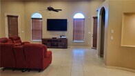 4-bedroom,3 bath,2-car garage; custom built home in Fort Mohave. This spacious 2,443 square foot home features 12 foot ceilings in the living room,kitchen and casual dining area with tile flooring throughout. The kitchen features upgraded appliances including side-by-side refrigerator/freezer and gas stove,granite counter tops,ample cabinets,kitchen island,breakfast bar and pantry. The master bathroom features a jetted tub and upgraded shower with steam room. French doors open up to the covered patio which extends the entire width of the house with beautiful views of the water and mountains. The 4th bedroom is an attached casita with a private outdoor entrance,full bath and kitchenette. The indoor laundry includes newer washer/dryer,sink and cabinets and leads to the two-car garage. Other amenities include water softener and R/O drinking water system,available high- speed fiber optic internet,low maintenance landscaping. Available October,2025. Pets negotiable. The community amenities include gated entrances,clubhouse,fitness facility,swimming pool,spa,tennis and pickle ball courts. Welcome Home to Los Lagos.