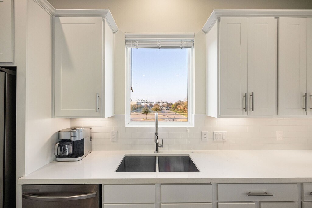 Corner,3-story home in a gated community with close proximity to Houston’s top dining and everyday conveniences. Enjoy walkability to neighborhood parks,access to nearby pickleball/tennis courts,green space,and playgrounds. The corner location provides additional windows and abundant natural light throughout! The home offers three bedrooms and 3.5 baths with an oversized covered balcony. A welcoming foyer connects all three levels and opens to a first-floor guest suite. On the second level,a sunlit great room opens to the covered balcony and a well-appointed kitchen featuring quartz countertops,shaker-style cabinetry,and premium appliances. The third level includes the primary suite,a second guest bedroom,and a conveniently located utility room. The primary suite features coffered 10-foot ceilings and a generous walk-in closet with built-ins. The spa-inspired bath includes a freestanding soaking tub,dual vanities,an oversized glass-enclosed shower,& a private water closet. MLS# 28898981