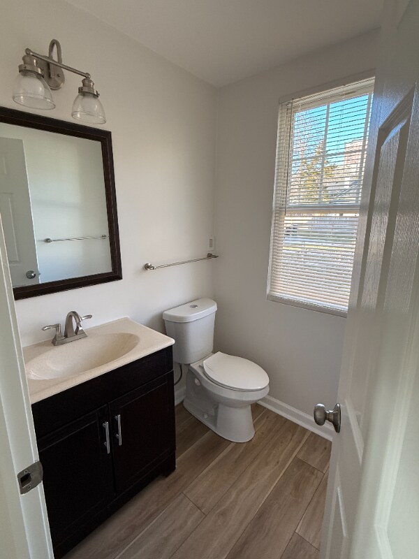 Property Id: 598676 Fabulously renovated 2 story home on quiet residential street. Hardwood plank floors on 1st level with huge eat in kitchen, living room, and den or first floor bedroom. 1/2 bathroom on the first floor. Kitchen equipped with all new appliances. 2nd level has 3 bedrooms, 1 full bathroom. Basement includes storage area with included washer and dryer. Central AC. No smokers inside or outside, Please No section 8, or vouchers. Open to small pets. Open to 2 year lease. Call or text Karen to view.