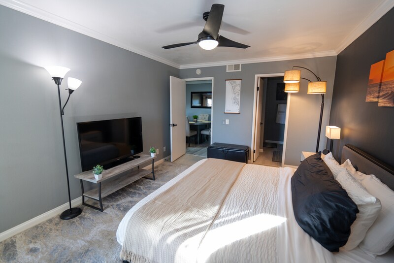 Welcome to the best of San Diego living with this fully furnished 2bedroom2bathroom condo nestled in the heart of Mission Valley. Just steps away from the worldrenowned Fashion Valley Mall, this centrally located smartcondo is a short 5minute drive from major freeways I5, I8, or CA163, giving you quick access to the beaches, Mission Bay, worldclass restaurants, and all San Diego has to offer. This safe and modern home has everything you need to relax and unwind during your stay See below for a complete list of what's included Fully stocked kitchen everyday appliances, pots pans, cutlery, storage containers, Brita filter, much more Highspeed WiFi Download speed 300 Mbps 2 reserved parking spots Several washersdryers on property Highquality mattresses in both bedrooms Blackout curtains, sound machines, and box fans in both bedrooms Discounted car rental available ask for details 75" Smart TV with surround sound Cable TV, Netflix, HBO Max included 55" TV with Apple TV in Master bedroom Gated community with overnight security Recently upgraded bathrooms with rainfall showerheads great water pressure Alexaenabled dimmable lights, Roomba vacuum, and central heating air Office desk w 27" monitor printer Keyless entry Large, welllit balcony with yoga mat adjustable kettlebell Walkin closets in both bedrooms 2 resortstyle pools, relaxing jacuzzi, 2 tennis courts, a fitness center, multiple BBQs, and a clubhouse w billiards and full kitchen Plenty of storage Extra blankets pillows Beach chairs, towels, games Cleaning supplies Monthly deepcleaning available upon request ask for details Friendly neighbors Lots of nursesPowered by