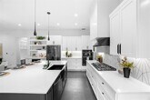 Modern luxury and thoughtful design come together in this stunning South Austin residence at 6304 Middleham Pl. Featuring 4 bedrooms and 3 bathrooms, this home showcases clean contemporary lines, metal roofing, and a sleek exterior that set the tone for the beauty inside. The open-concept layout features soaring ceilings, oversized windows, and a chef’s kitchen with quartz countertops, custom cabinetry, a massive island, and designer fixtures. The spacious primary suite offers a spa-inspired bathroom with a freestanding soaking tub and dual vanities. Enjoy a dedicated office, generous secondary bedrooms, and seamless indoor-outdoor living with large sliding windows overlooking the private fenced yard. Located minutes from Downtown Austin, dining, shopping, and parks, this home delivers style, comfort, and convenience in one incredible package.