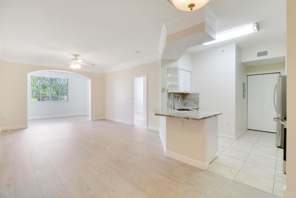 Beautifully updated 2-bedroom, 2-bathroom condo featuring a charming sunroom. This upgraded unit is move-in ready, boasting pristine finishes throughout. Fiore at the Gardens is a tranquil, gated community offering an array of resort-style amenities, including a gym, heated pool, car wash, putting green, and more. The community's excellent location adds to its appeal.
