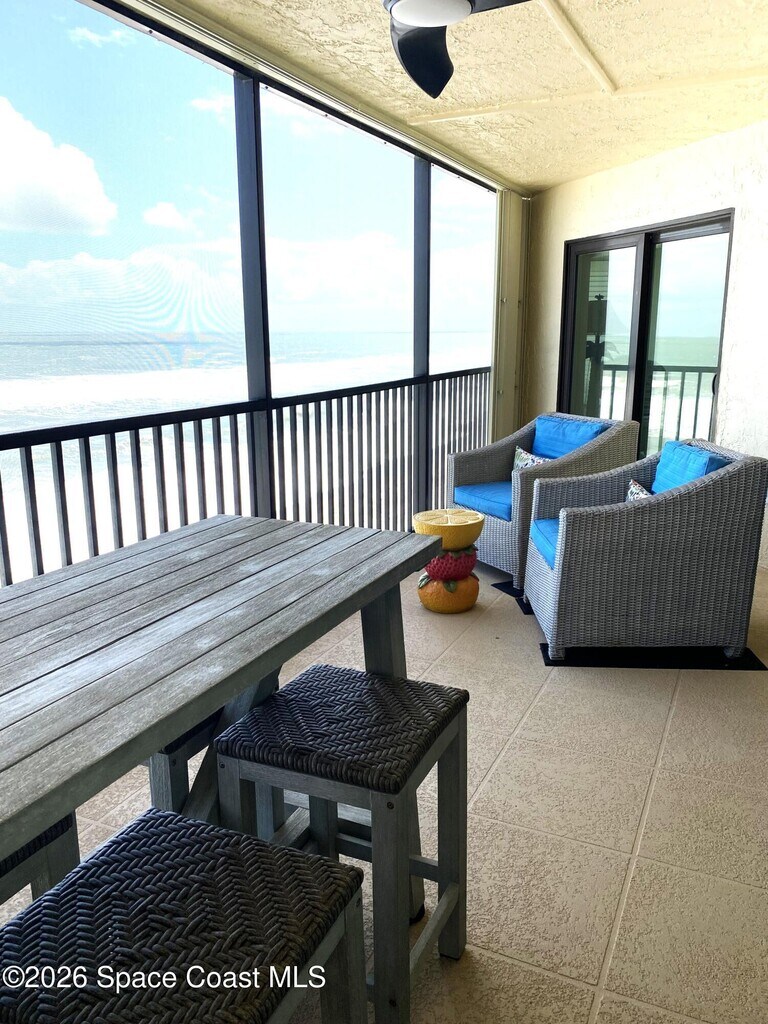 Looking for that special oceanfront condo? Take a peek at this beautifully decorated 5th floor charmer. The views are breathtaking,the location is fabulous in south Melbourne Beach away from all the hustle and bustle. Two lovely bedrooms with a King bed in the master and twins in the guest bedroom. Split floor plan for privacy. Washer and Dryer in hallway to guest bath. The large kitchen with granite counters and great appliances is furnished with everything you need to cook and entertain. There is a large walk-in pantry and storage closet,as well. Parking in the building with guest spaces outside. There is a sparkling pool,covered dining area,tennis courts,barbecue area and restrooms,of course. The private ocean access leads you to one of the most pristine beaches in Florida and you will love the fishing as well. Be sure to watch the space launches. Shopping and restaurants are about 4 miles north. World famous Sebastian Inlet is just 6 miles south. MLS # 1074423