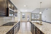 Spacious 4-bed, 2.5-bath home with formal dining, game room, 2-car garage, laminate wood flooring, and granite kitchen counters. Features gas cooktop, large island, complemented by stainless steel appliances, and included refrigerator. Open concept living. The primary bathroom is a retreat with separate vanities, granite counters, a separate shower, and soaking tub. Take advantage of the neighborhood's upscale amenities: two pools, a kiddie pool, Bocce Ball, a putting green, playground, dog park, and scenic hike & bike trails. Your ideal home awaits.