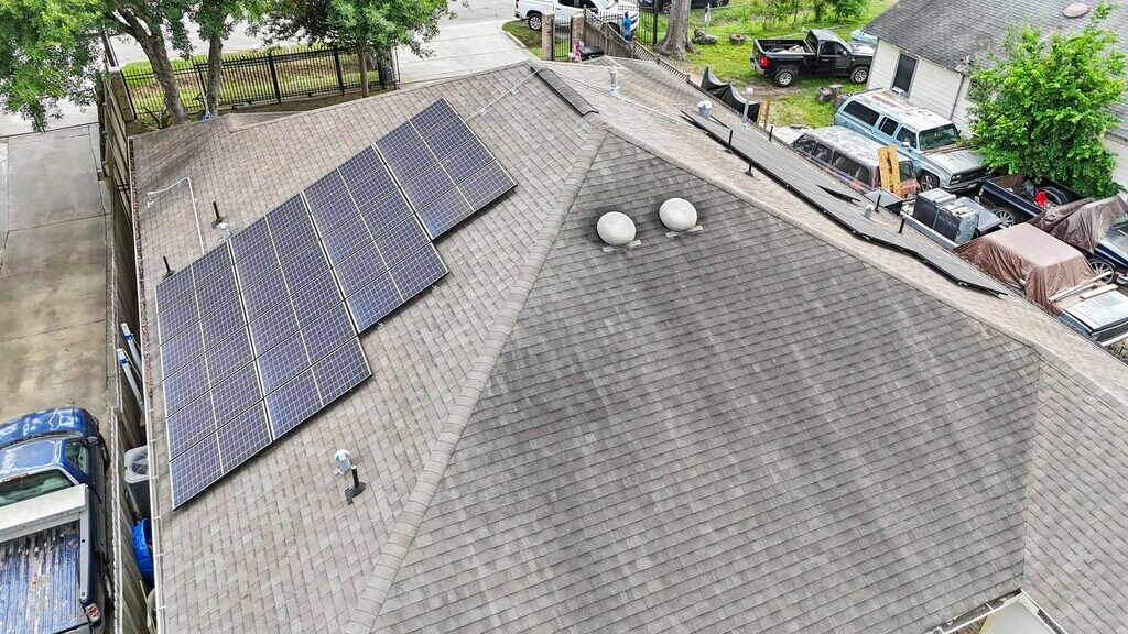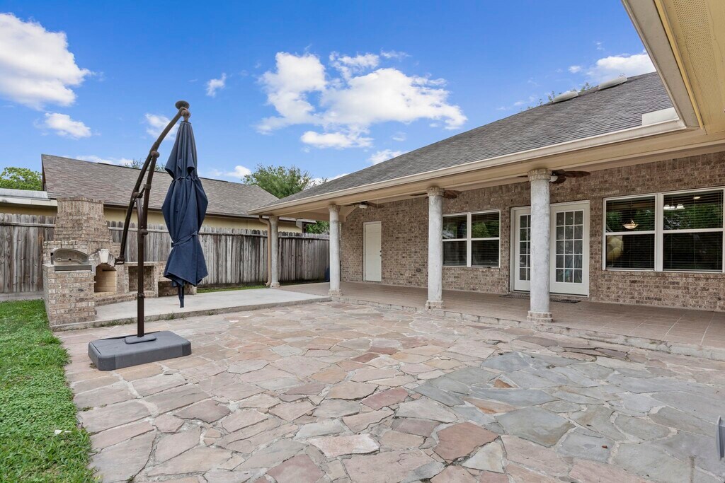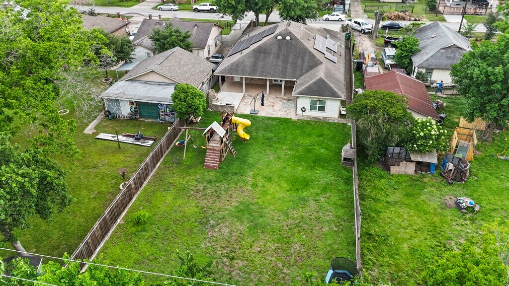 Welcome to this stunning Brick home with a gated driveway and a spacious backyard featuring a private playground,covered patio,and patio kitchen. This property features solar panels,great for energy savings,a water softener,and a new metal fence on the left side. Conveniently located near a shopping center and international restaurants,this property is just 10 minutes from downtown Houston,offering quick access to main highways and public transportation. It boasts three bedrooms,2.5 bathrooms,an open-concept floor plan,a lovely back patio,and extra storage space. Don't miss this fantastic opportunity for a beautiful home in a desirable location! MLS# 45881438