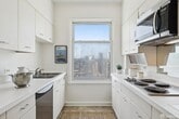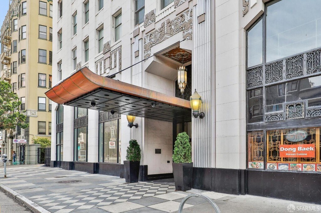 Experience unparalleled city living in this rarely available, spacious one-bedroom corner unit, located on the 20th floor of the iconic Hamilton Building. As one of only three units on this special floor, it offers exceptional privacy with only one shared wall. This highly desirable floor plan boasts a variety of stunning views, including the city, water, mountains, and spectacular sunsets. The living room is a highlight, featuring sweeping vistas of Nob Hill and the Transamerica Pyramid, a cozy decorative fireplace, rich crown molding, and custom built-ins. The mid-century galley kitchen provides ample cabinet and counter space, a pantry, a built-in oven, a 4-burner stove, and a stainless-steel fridge. The bathroom has been updated with a walk-in shower and a modern vanity. The Hamilton Building is an Art Deco masterpiece, offering a dramatic lobby, 24-hour desk service, a ballroom, a fitness center, a BBQ patio, and a sky deck. Its prime location is steps from Union Square, public transit, and San Francisco's most iconic attractions. Pet-friendly with a $600 deposit required per pet, 2 pet max Move-In Cost: One months rent plus security deposit. As well as a non-refundable $200 move-in fee that's required by the Homeowners Association (HOA).
