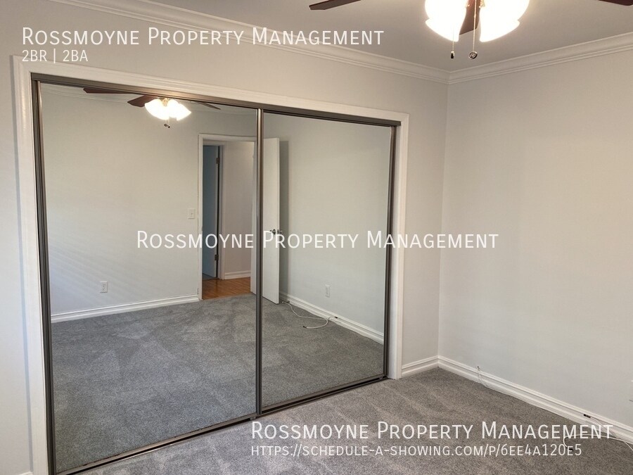 2 Bedroom 2 Bath Upper Unit in Burbank Laundry on site. Centrally Located. 1 assigned off street parking. Refrigerator will be furnished by landlord. No pets (Service animals and ESA exempt). Excellent Credit Required. Renters Insurance Will Be Required. This home is for rent exclusively by Rossmoyne Property Management. Beware of any other individual(s) (even someone claiming to be the owner of the home) who might have directed you to schedule a showing — or might have scheduled a showing for you. Do not submit any application for this home with — or pay any fees or deposits to — any party other than Rossmoyne Property Management. If you have any questions or concerns, please contact: Rossmoyne Property Management -Applications and instructions can be downloaded at ; $40 application fee per adult payable in cash, cashier's check, money order or via Paypal to Rossmoyne Property Management; proof of current verifiable income required with completed application forms. Cal DRE 00659141