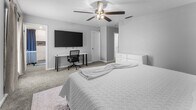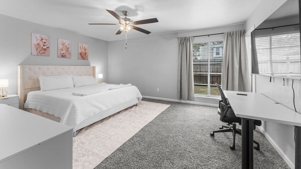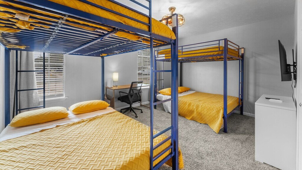 Welcome to your ultimate Corpus Christi retreat! This spacious 4-bedroom, 2-bathroom home is perfect for large families and groups, comfortably sleeping up to 16 guests. Centrally located, you're just a quick drive to Whitecap Beach, top dining spots, shopping, and local attractions. Enjoy two massive living rooms, a fully stocked kitchen, and spacious dining areas, making it easy to feel at home. Designed with you in mind, this home features two massive living rooms with a spacious and open layout, coastal décor, and plush sectional sofas for group gatherings. The fully stocked kitchen boasts stainless steel appliances, ample counter space for meal prep, and a large dining table with additional bar seating. The bedrooms offer comfort with a king-size bed in the primary bedroom, a queen bed in the second bedroom, and two full-over-full bunk beds in both the third and fourth bedrooms, perfect for kids or groups. Enjoy ample parking with a large driveway and two-car garage space. Family-friendly amenities include a kids' table and toys. Nestled in the heart of Corpus Christi, the charming 'The Lakes' neighborhood offers the perfect blend of coastal tranquility and vibrant energy. Enjoy easy access to miles of pristine beaches, nearby parks, and nature reserves for outdoor adventures. Immerse yourself in the local culture and culinary scene with an array of charming cafes, seafood restaurants, and beachside eateries. Family-friendly attractions like the Texas State Aquarium and the USS Lexington Museum are also nearby. Starter supplies are provided, including trash bags, dishwashing pods, toilet paper, shampoo, conditioner, body wash, coffee, creamer, and sugar. These items are intended to get you started, and any additional supplies beyond the starter pack are the guest’s responsibility unless your stay is 14 days or longer, in which case a mid-stay replenishment may be offered. [SI]
