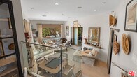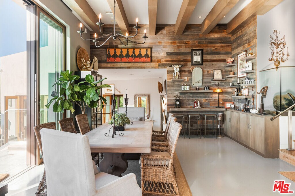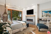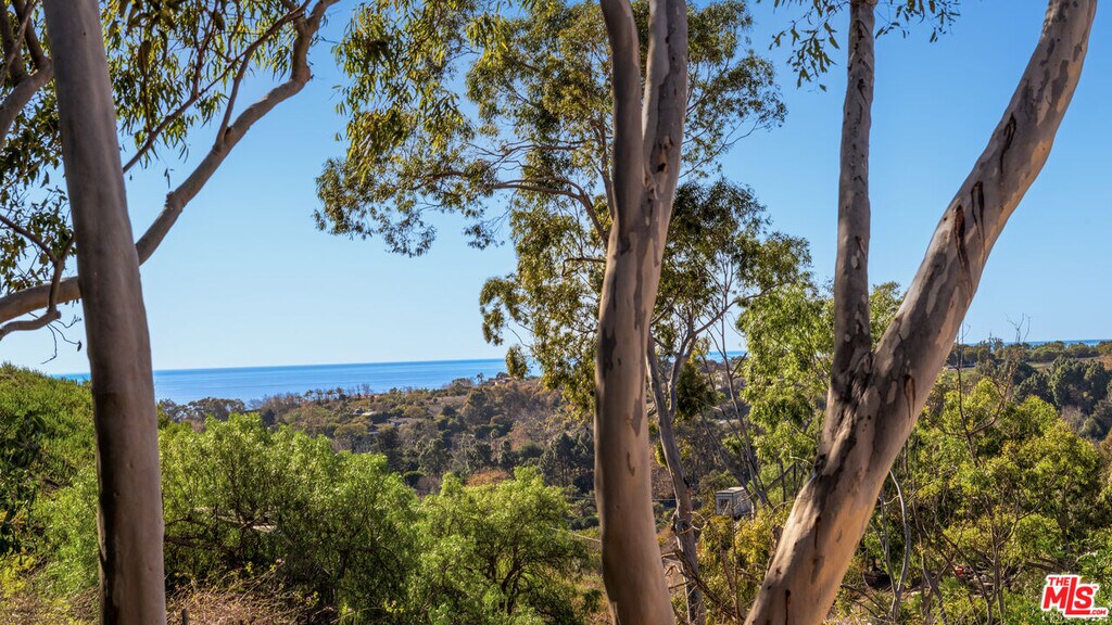 Nestled within a serene and private enclave, this exceptional estate blends refined luxury with breathtaking natural surroundings. A gated driveway leads to the residence, set amid manicured grounds with an automated irrigation system and framed by tranquil landscaping. A covered entry welcomes you into a thoughtfully designed interior that balances warmth, scale, and architectural detail. Wood floors anchor the main level, where a gracious living core connects seamlessly to multiple bedroom suites. A powder room sits just off the main living area, while two guest bedrooms feature high ceilings, generous closets, and French doors that invite natural light. A beautifully finished guest bath includes a sleek vanity and tiled shower. A well appointed laundry room offers stone tile floors, custom cabinetry, a sink, and modern appliances, while an adjacent linen storage area is discreetly tucked behind French doors.A flexible bonus room, currently arranged as an office and media space, features high ceilings, a sliding barn door, plush carpeting, and ample closet storage, allowing it to function effortlessly as an additional bedroom or recreation room. The primary suite serves as a private sanctuary, complete with wood floors, dual wardrobe rooms, and expansive ocean views. An electric fireplace, integrated sound system, and soaring ceilings elevate the space, while glass doors open to a private deck capturing sweeping ocean and mountain vistas. The spa inspired bath features stone tile floors, a freestanding soaking tub positioned to enjoy mountain views, a rainfall shower with multiple heads, a private water closet with built ins, and dual vanities with generous counter space. A skylit hallway leads down subtle interior steps to the open plan living, dining, and kitchen spaces. The dining area is highlighted by exposed wood beamed ceilings and sliding glass doors that open to the backyard. A reclaimed wood bar area adds warmth and character, while the living room offers a fireplace and intimate seating areas that flow naturally into the kitchen. The chef's kitchen is both striking and functional, featuring sleek modern flooring, an oversized island with stone counters, a Sub Zero refrigerator with freezer drawers, marble countertops, and a full suite of Wolf appliances including a double oven, six burner range, griddle, and microwave. Additional features include a built in Miele coffee system, Bosch dishwasher, large sink with filtered water, and expansive ocean views. Sliding glass doors open to a full width deck with a covered pergola, retractable roof, integrated heaters, outdoor kitchen with Wolf barbecue, and a seating area centered around a glass fire feature. The terraced backyard unfolds across multiple levels, with stone pathways connecting seating areas, garden spaces, a small vineyard, and a private deck with a built in Jacuzzi. Below, an expansive lawn and additional firepit seating complete this outdoor retreat, all set against panoramic ocean and mountain views.Inside, a secondary living room offers custom shelving, soft carpeting, and French doors framing more coastal scenery. A temperature controlled wine cellar is concealed behind a sliding barn door, while a dedicated home theater features plush flooring, a large projection screen, and direct access to the backyard. Additional amenities include a four car driveway, two car garage with a bonus room suitable for a gym or art studio, sauna, dedicated wine storage, and mini Sub Zero refrigerator. An integrated smart home system with iPad control and security cameras provides modern convenience throughout. This estate offers a rare combination of architectural sophistication, resort style amenities, and a setting defined by privacy and natural beauty, ideal for both elevated entertaining and everyday serenity. MLS# 25628629