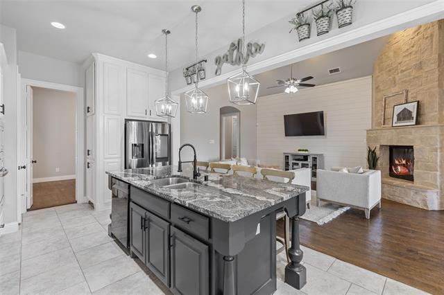 Welcome Home! This beautiful 4 bed, 4 bath immaculate one story home is ready for move in! The home features hand scraped hardwoods and new carpet. The kitchen offers an abundance of storage, vent hood, gas cooktop, granite buffet and an island! Kitchen is open to the living room which has a stone fireplace, perfect to use for cozy winter nights in! The floorplan includes a study and a formal dining room. The large master suite offers a garden tub, dual vanities, custom closet system and separate shower. Walk outside to find the covered patio and firepit set up. The garage is a 3 car tandem! HOA includes: Front Yard Care, Cable, Internet, Gym, Pools, Parks, Splash Pad, Dog Park, Clubhouse, Trails & Ponds!