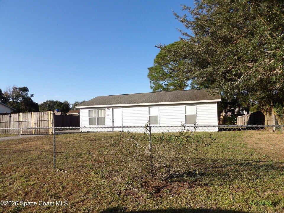 Three bedroom,two bath home in Port St John with large fenced yard,shed for extra storage,open floor plan,new vinyl plank flooring,ceiling fans,washer/dryer included,easy access to major roads,Owner will consider one dog up to 25 lbs or neutered cat,Available now,Owner will provided lawn and pest control at an additional fee per month MLS # 1065822