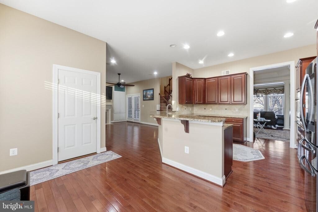 Welcome to 6319 Still Spring Place, located in the Northampton neighborhood of the Kingstowne community. This Marlow model offers over 4,000 sq ft of living space with 4 bedrooms, 4 full baths, 1 powder room, and a 2-car garage, surrounded by mature landscaping. The main level features hardwood floors and a gourmet kitchen with granite countertops, double ovens, a 5-burner gas cooktop, pantry, cherry cabinetry, built-in desk, and eat-in area. The adjacent den includes a gas fireplace, custom built-ins, and access to a deck ideal for outdoor entertaining. Formal living and dining rooms and a home office complete the main level. Upstairs, the spacious primary suite includes a sitting area, tray ceiling, walk-in closet plus an additional closet, and a private bath with soaking tub, double vanities, and separate shower. Three additional bedrooms and two full baths are also located on this level. The lower level offers a separate entrance, large recreation space with a wet bar, bonus/flex room, and a renovated full bath. New carpet has been installed throughout. Outdoor features include a patio with pergola and a full lawn sprinkler system. Community amenities include pools, pickleball courts, walking and biking paths, tot lots, trash, recycling, and snow removal. Convenient access to Metro, bus routes, VRE, and slug lines. This is the one!
