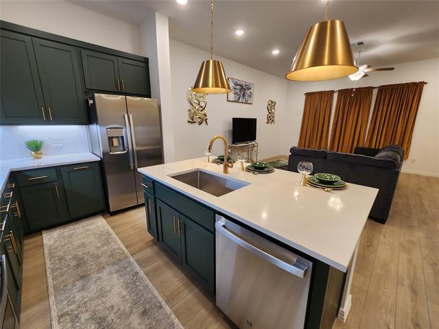 FURNISHED Charming, Fenced-In Small Front Yard! Experience low-maintenance living with high-end style in this beautifully designed new townhome ideally located in the vibrant heart of Mansfield, Texas. Designed with the Luxe Collection, this home features stunning greens and luxury finishes. This thoughtfully crafted two-story home welcomes you with an open-concept floor plan that combines modern design with everyday functionality. The stylish kitchen is a true centerpiece, featuring stainless steel appliances, an eat-in island, and a spacious walk-in pantry—perfect for meal prep, storage, and casual dining. Upstairs, privacy and comfort take center stage. A large landing area leads to the serene primary suite, which includes a private bathroom with a dual-sink vanity, a glass-enclosed walk-in shower, and an oversized walk-in closet. Two additional secondary bedrooms share a well-appointed full bath and convenient linen storage. Whether you're relaxing at home or exploring all that Mansfield has to offer, this townhome offers the perfect blend of comfort, style, and location. SPECIAL MOVE-IN: 2 MONTHS ALL UTILITIES PAID