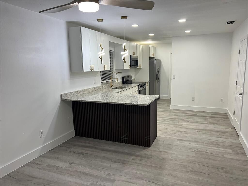 Walcome to thus just renovated and ready for move in! Enjoy living in this charming apartment with private pool,and well mateince patio. The apartment features 2 bedrooms and 2 baths. Modern open floor plan with grey laminated floors,recessed lighting,and clean lines to the renovated kitchen with new appliances,wood cabinets,large sink and . Take advantage of having brand new dishwasher,large refrigerator,microwave and refrigerator,included : washer and dryer,blinds on windows,central AC and heat,private patio,private parking for 4 or more vehicles on drive way,just 2 minuts to 27 Highway,close to I4,next to Publix,Aldi,Walmart,Walgreens,CVS,and lots of retaurants. ELECTRICITY,WATER,AND INTERNET ARE INCLUDED IN MONTHLY RENT!!! make your appointment today! MLS# O6340349