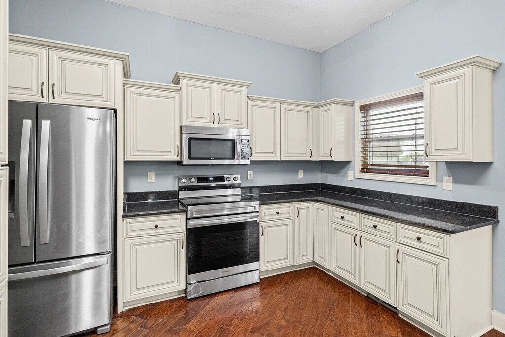 Discover this well-appointed 3-bedroom, 2-bath home in Clarksville, TN. The kitchen features stainless steel appliances, granite countertops with a breakfast bar, and opens to a formal dining area and a patio off the kitchen. The spacious living room includes a fireplace, and the primary suite offers an en-suite bath with a large tiled shower, jetted tub, and a large walk-in closet. Attached 2-car garage provides ample storage. 2 pets 35 LBS or less are welcome, pet fees & breed restrictions apply.