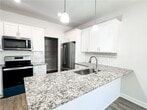 Like-New Townhome built in 2024 - move in ready! 3 bedroom/2.5 bath- 2 car garage. Family room features open concept with LVP flooring,cozy wood burning fireplace,and view to covered patio. Large kitchen with white cabinets,granite countertops,tile backsplash,walk in pantry,and countertop peninsula for barstool seating. 1/2 bath on main level. All bedrooms and laundry are upstairs as well as 2 full bathrooms. Over-sized main bedroom with sitting area,ceiling fan,and walk in closet. Main bathroom has double vanity,linen area,and large tile shower with glass door. Guest bath with tub/shower combo. Faux-wood blinds throughout. Washer and Dryer and Landscaping included in rent price. Great location,beautiful home,Must See!