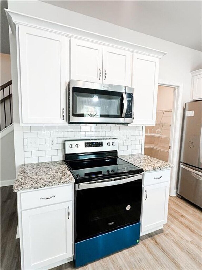 Like-New Townhome built in 2024 - move in ready! 3 bedroom/2.5 bath- 2 car garage. Family room features open concept with LVP flooring, cozy wood burning fireplace, and view to covered patio. Large kitchen with white cabinets, granite countertops, tile backsplash, walk in pantry, and countertop peninsula for barstool seating. 1/2 bath on main level. All bedrooms and laundry are upstairs as well as 2 full bathrooms. Over-sized main bedroom with sitting area, ceiling fan, and walk in closet. Main bathroom has double vanity, linen area, and large tile shower with glass door. Guest bath with tub/shower combo. Faux-wood blinds throughout. Washer and Dryer and Landscaping included in rent price. Great location, beautiful home, Must See! Ask about 1 month free with multi-year lease agreement. By submitting your information on this page you consent to being contacted by the Property Manager and RentEngine via SMS, phone, or email.