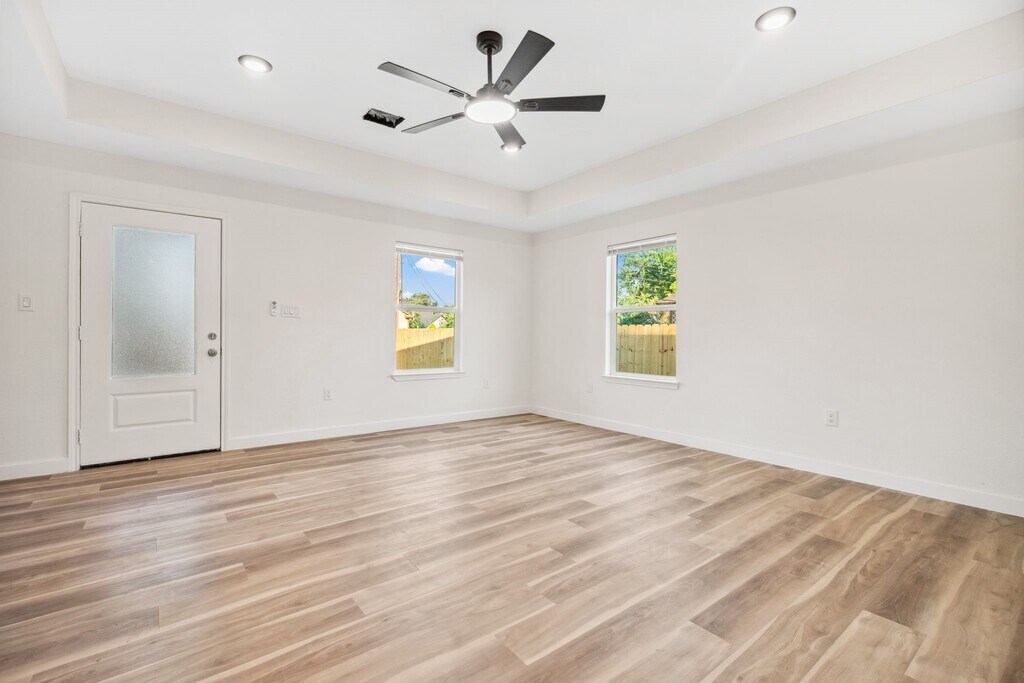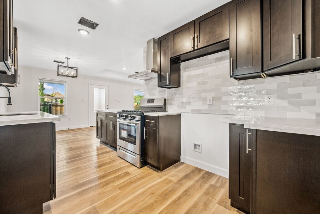 DON'T MISS OUT!! Beautiful 3-bedroom,2-bath home showcasing fresh designer finishes and spacious living. The open-concept layout offers seamless flow from the bright living area to the stunning kitchen featuring espresso cabinets,quartz counters,and stainless steel appliances. This home features vinyl plank flooring,matte black fixtures,and great natural light throughout. Both bathrooms include tubs—plus the primary suite boasts a spa-inspired en-suite with a freestanding soaking tub,dual sinks,and a large walk-in shower. Enjoy a fenced backyard,perfect for relaxing,entertaining,etc. Gated drive with private parking and a curb appeal. MLS# 35010369