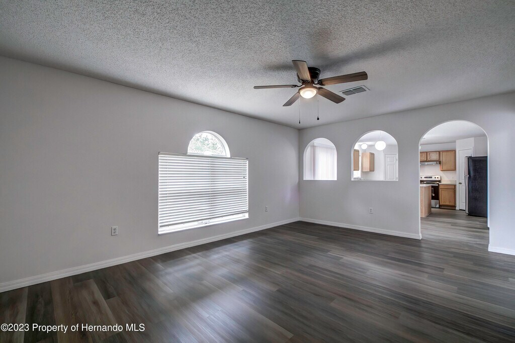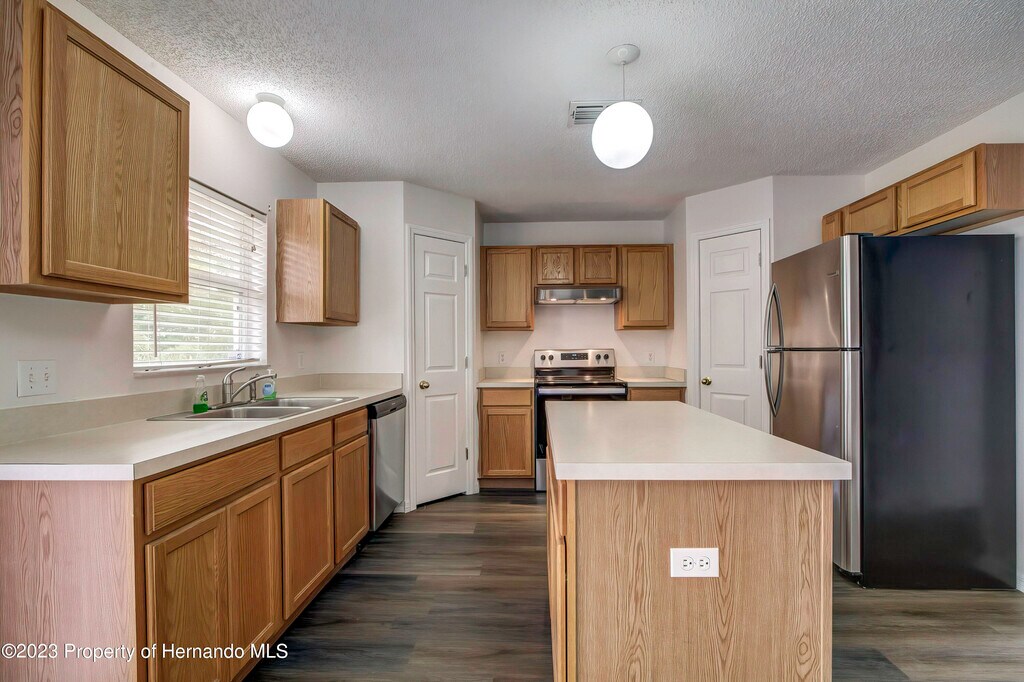 Looking for a large home that is move in ready in a great location? This one is it! This 4-bedroom, 3 bath home features a living space that is great for entertaining. Upgrades recently include New Luxury Vinyl Flooring throughout, newer appliances; full interior recently painted. Featuring a great room; dining room; family room; breakfast nook area and large kitchen on Main level. Upstairs has 4 bedrooms including the Primary Bedroom with Full bath with garden tub; separate shower; 2 walk-in closets. Oversized lot, almost a half-acre, a huge yard. Easy access to stores, restaurants, Suncoast Parkway. This one won't last long.