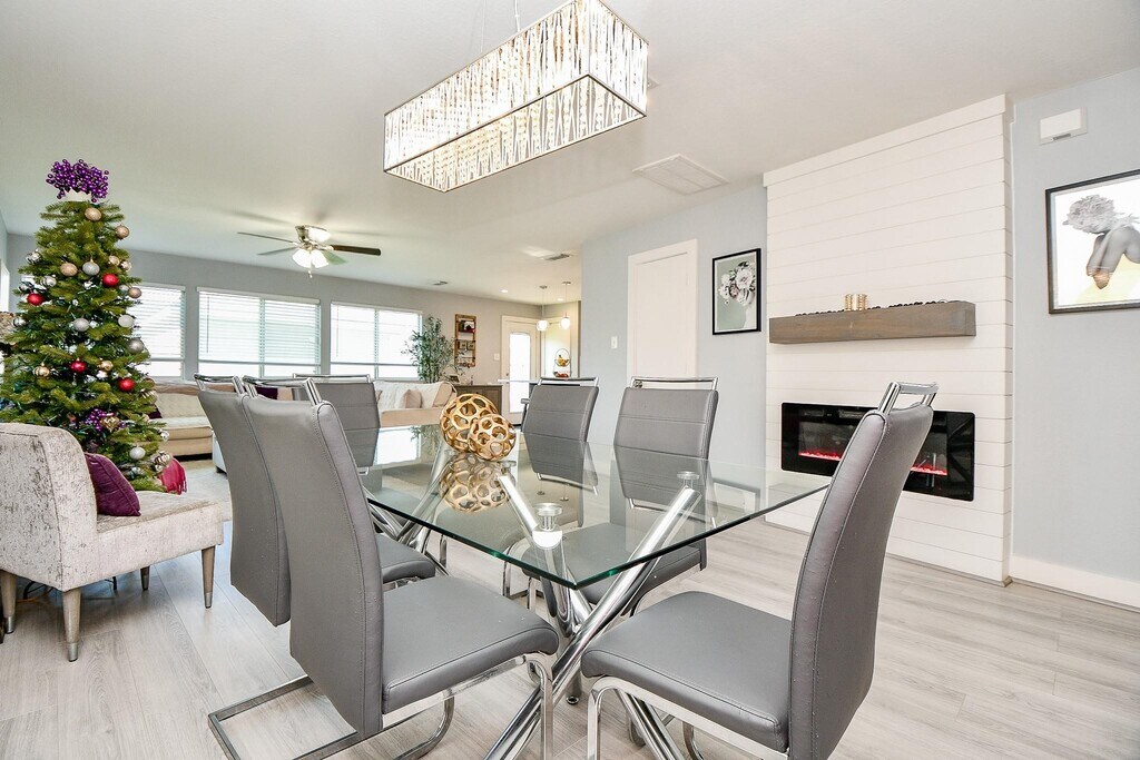 Claudio AndradeThis stunning 2-story home has been beautifully updated & is ready for you. The spacious open layout showcases modern design. Step inside to a light-filled dining room that seamlessly connects to a living room with a decorative fireplace. The open kitchen features a refrigerator, quartz counters, SS appliances, and a large island/breakfast bar for casual meals, all vinyl plank floors. The spacious primary bed, conveniently located on the first floor, has tile floors & a private bath. Upstairs, a beautifully crafted wood stairway with iron spindles leads to a large gameroom with 2 ceiling fans & access to the front balcony. There are also 3 additional spacious beds with tile floors & a laundry room with a washer & dryer. Boasting a Generac generator (2022) for the entire house, new HVAC system, water heater, & a new roof (2024). The expansive backyard and detached 2 car garage enhance the home s appeal. Located in Lakeville subdivision, family-friendly neighborhood with parks & lake.