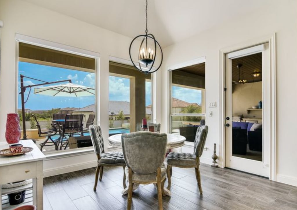 Located in San Antonio's prestigious guard-gated community, The Dominion, this sleek and modern home by McNair Custom Homes offers supreme craftsmanship and design. Situated on a desirable corner lot, this 4-bedroom, 4.5-bath property features a stunning Keith Zars in-ground heated pool and a fully equipped outdoor kitchen, making it perfect for entertaining or relaxing. The spacious open floor plan is flooded with natural light and provides a seamless flow for both hosting gatherings and everyday living. Multiple living areas offer flexible spaces to suit any lifestyle. Elegant Restoration Hardware chandeliers and fixtures add a luxurious touch throughout the home. The gourmet kitchen is a chef's dream, complete with stainless steel appliances, a large island, and views of the pool and patio. This home offers the perfect balance of modern sophistication and comfortable living in one of San Antonio's most sought-after neighborhoods.