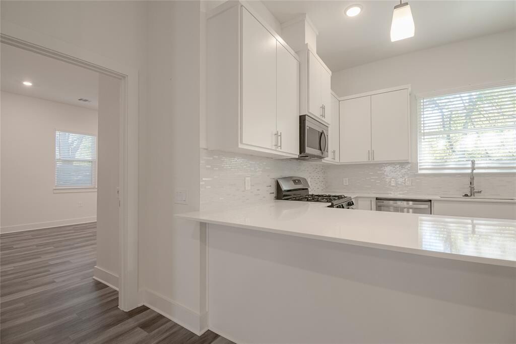 Discover modern comfort and thoughtful design in this contemporary 2-bed, 2.5-bath duplex located in the fast-growing Montopolis area of Austin. Built with clean lines and light-filled spaces, this home offers an inviting layout perfect for anyone seeking a functional and stylish living experience. Step inside to an open-concept main level featuring high ceilings, recessed lighting, and durable plank flooring throughout—no carpet anywhere. The spacious kitchen includes sleek white cabinetry, quartz countertops, stainless steel appliances, a gas range, generous storage, and an expansive peninsula ideal for cooking or entertaining. Both bedrooms are well-proportioned and located away from the main living area for comfort and privacy. Each full bathroom features a walk-in shower with modern tile, frameless glass, updated fixtures, and ample cabinet space. The convenient half bath on the main level is perfect for guests. Outside, enjoy a private fenced side yard with a covered patio—great for relaxing or setting up a small outdoor seating area. The front of the home includes a deep carport that provides shaded parking and additional storage opportunities. **SHARED METER - UTILITIES ARE SPLIT 50 / 50 and are billed each month Located minutes from Riverside, Austin-Bergstrom International Airport, downtown Austin, parks, restaurants, and major highways, this home offers a central location with quick access to everything the city has to offer. This beautiful duplex blends contemporary design with everyday practicality—an excellent option for anyone looking for a clean, modern living space in Austin.