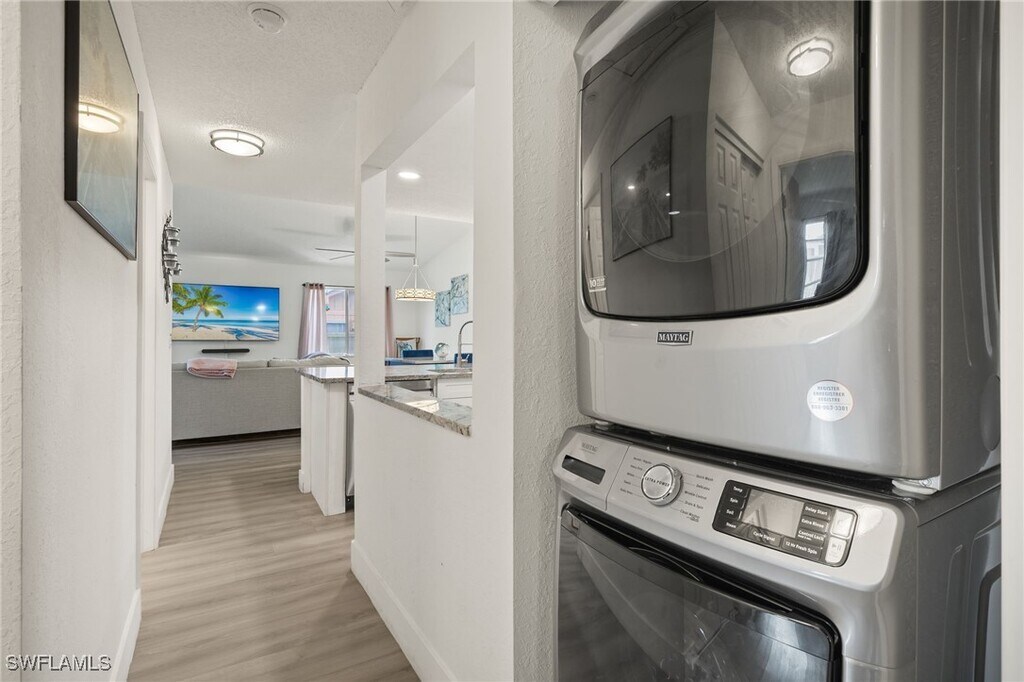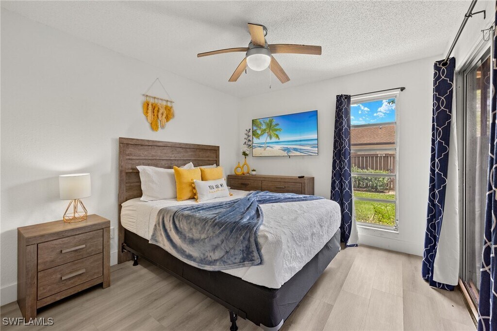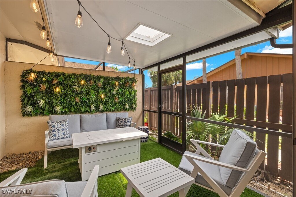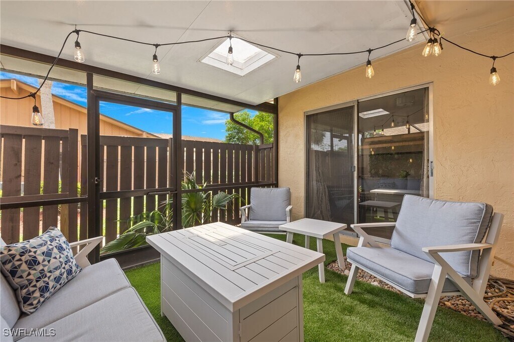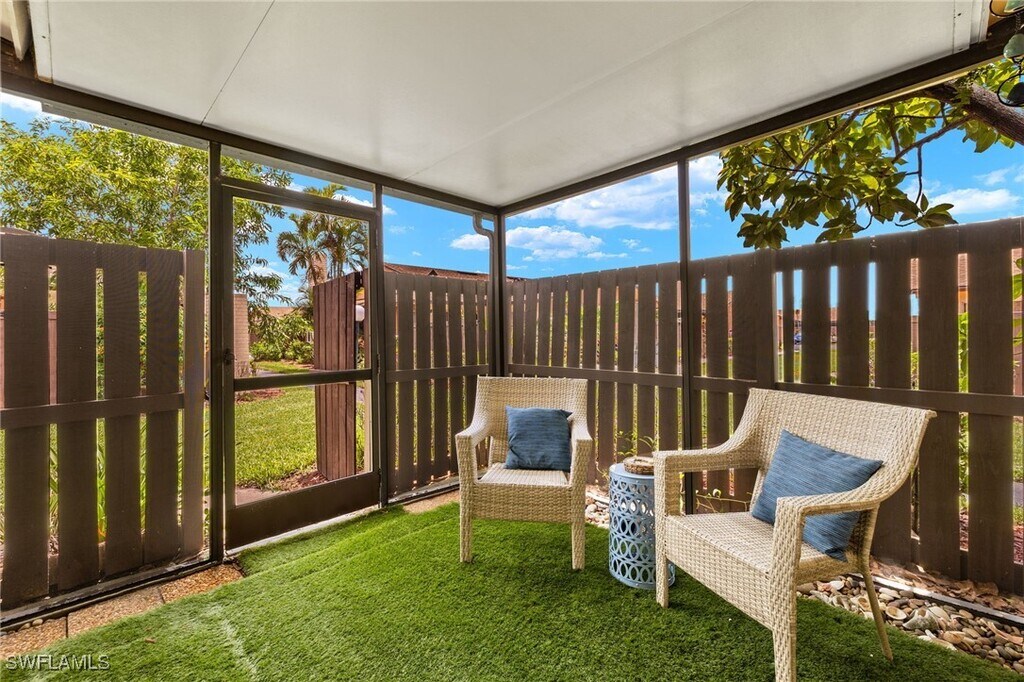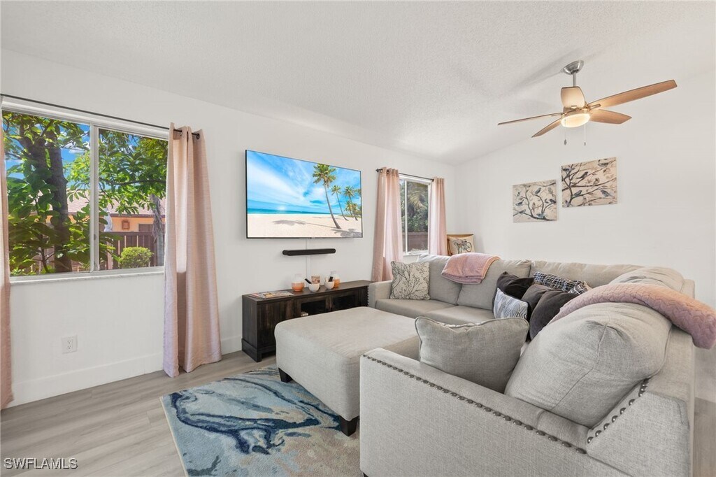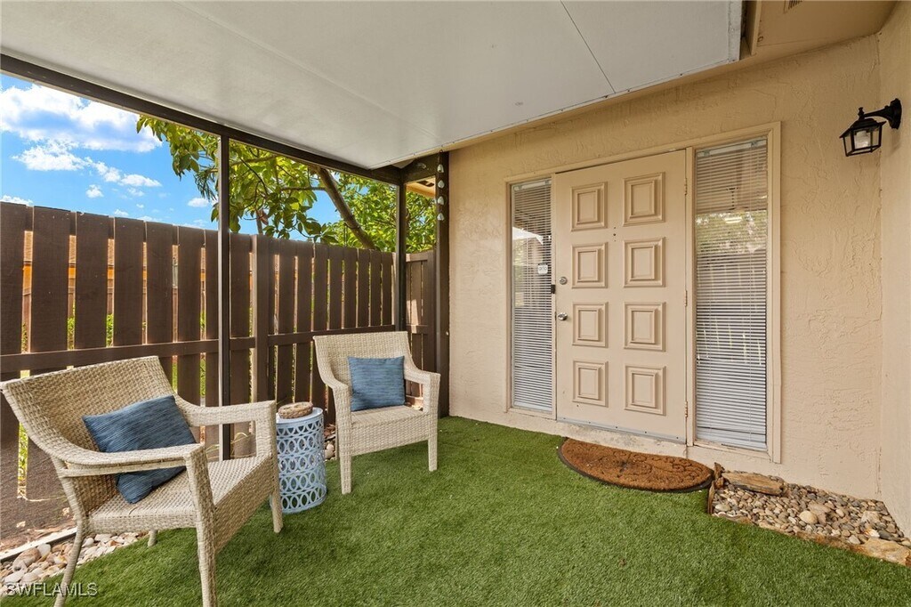 Welcome to this beautifully updated 3-bedroom,2-bath attached villa,perfectly situated to enjoy the best of Southwest Florida living. Offered on an annual basis and unfurnished,this spacious home features luxury vinyl plank flooring throughout and a thoughtfully renovated kitchen with new cabinets,granite countertops,and stainless steel appliances. Enjoy the outdoors from two covered,screened-in lanais,providing added privacy and relaxation space. The owner’s suite offers a large walk-in closet and an en-suite bath with a walk-in shower and glass doors. Two additional bedrooms are bright and inviting,each with ample closet space and ceiling fans. The guest bath includes a convenient tub/shower combo. Additional highlights include an in-unit stackable washer and dryer and an assigned parking space right out front. Residents will also enjoy access to community amenities such as a pool,tennis courts,and pickleball courts — perfect for year-round recreation. Located just off US-41,this villa offers quick access to shopping,dining,supermarkets,and Southwest Florida’s stunning beaches. The property is available unfurnished,but furniture can be provided as pictured if desired.