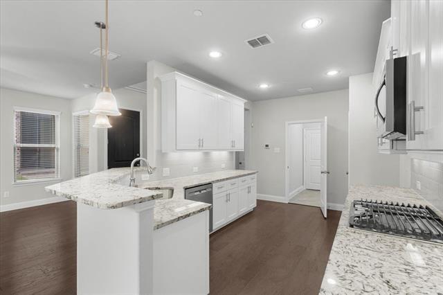 Totally interior fresh paint, spotless cleaning, most quiet 3 bedroom townhouse in the community. Excellent location in West Plano within Technology Corridor, easy access to Tollway, George Bush Turnpike, and 121. Minutes from Stonebriar Mall, Willow Bend Mall, Legacy West Plano Shopping, and many restaurants. Superior Plano School ISD. Open floor plan with plenty of natural light. The expansive family room features a cozy fireplace, spacious kitchen boasting elegant granite countertops, a breakfast bar, lovely white cabinetry & stainless-steel appliances with a gas cooktop. Upstairs, discover all three generously sized bedrooms & two beautifully appointed bathrooms. The master suite invites relaxation with its soaring ceiling and spa-like bath, complete with double vanities, a walk-in shower & large walk-in closet. 2 car garage attached with garage door openers. All wood on first floor, and carpet on second floor. Backyard facing to a greenbelt.