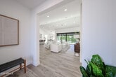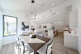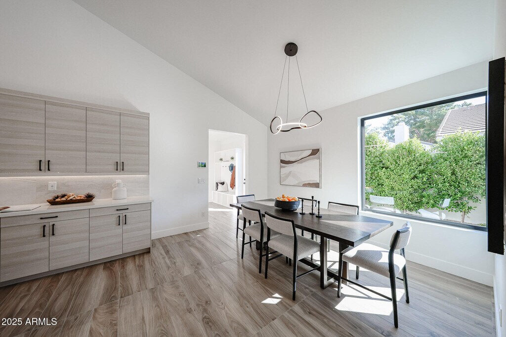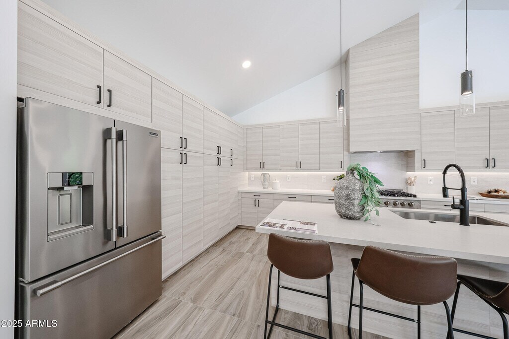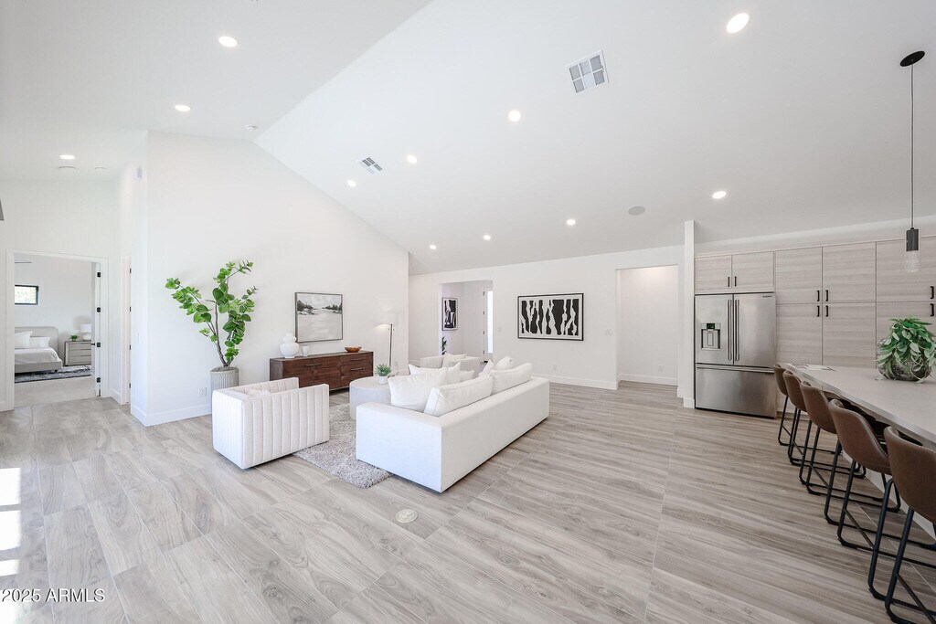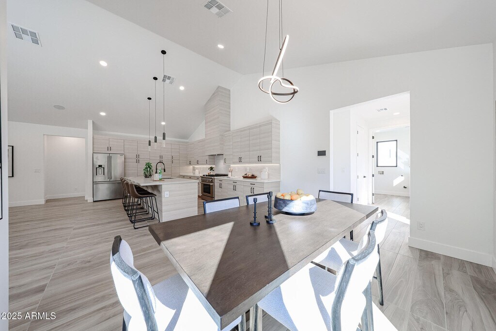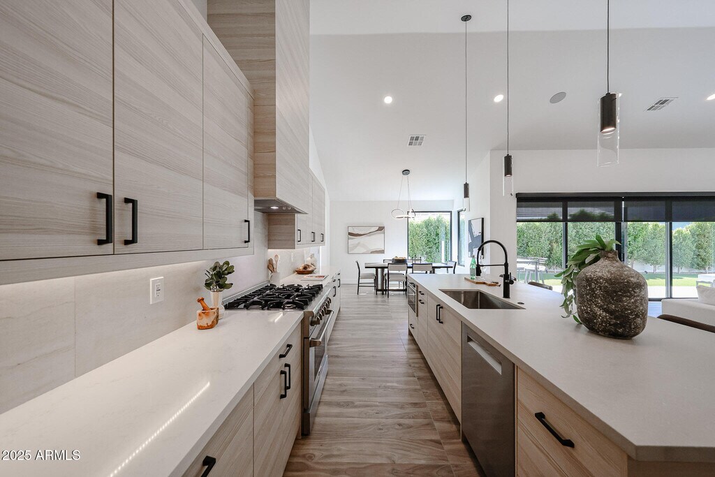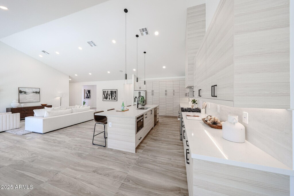 This single-level 4-bedroom,3.5-bath residence offers 2,680 square feet of beautifully designed space,combining sustainability,technology,and comfort. Inside,the floor plan is open yet functional,with vaulted ceilings,16' sliding glass doors,and oversized bedrooms and bathrooms. The chef's kitchen features quartz countertops,Energy Star appliances,and custom cabinetry,all designed to complement the home's sleek,modern aesthetic. Step outside to the covered back patio and landscaped backyard,perfect for relaxing or entertaining.