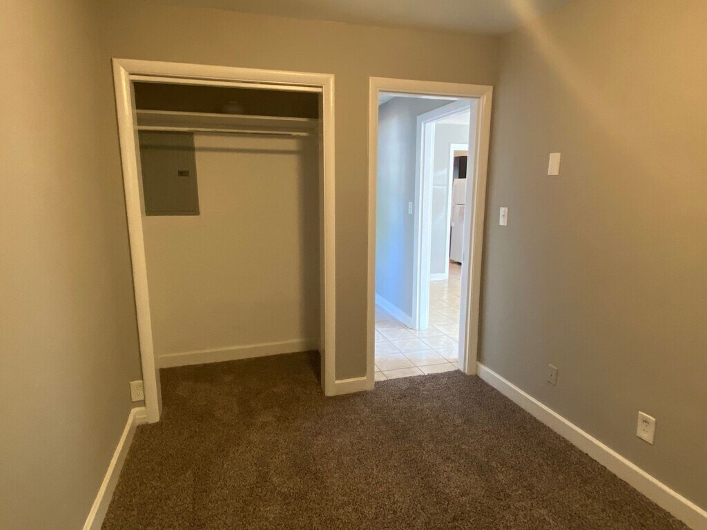 2 bedroom 1 bath house, new flooring, cabinets and appliances, just painted. Convenient downtown location. 12 month lease, no smoking. No washer/ dryer hookups. Cats allowed with deposit. Lawn maintenance included.