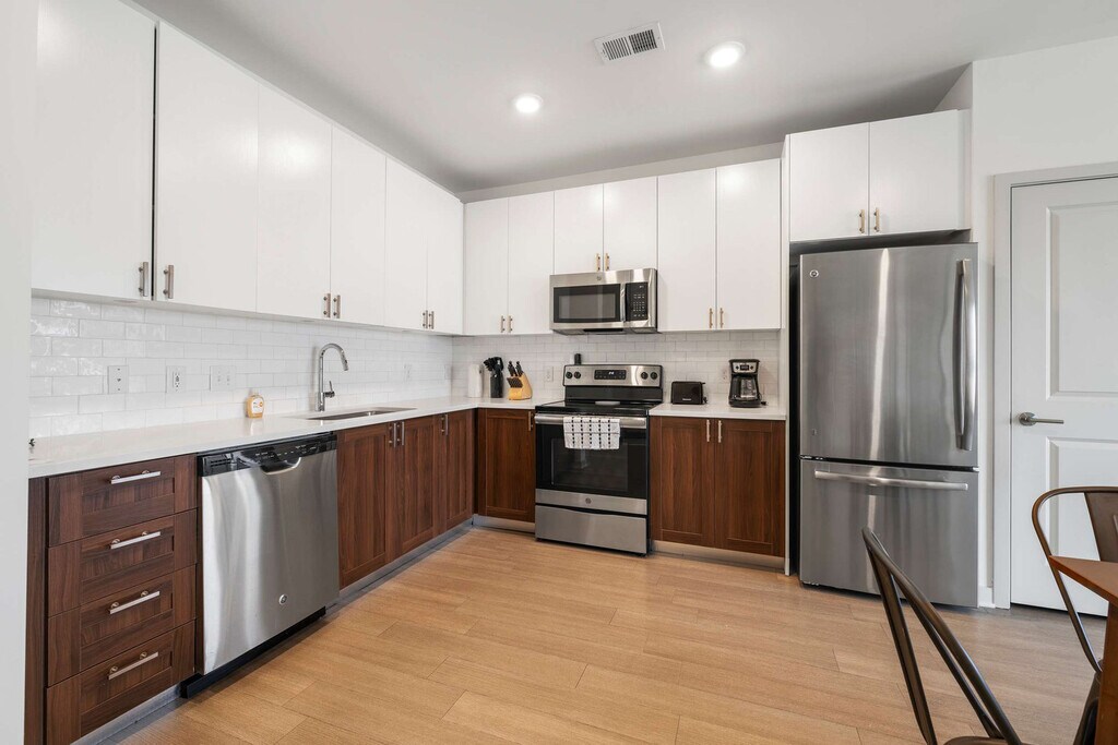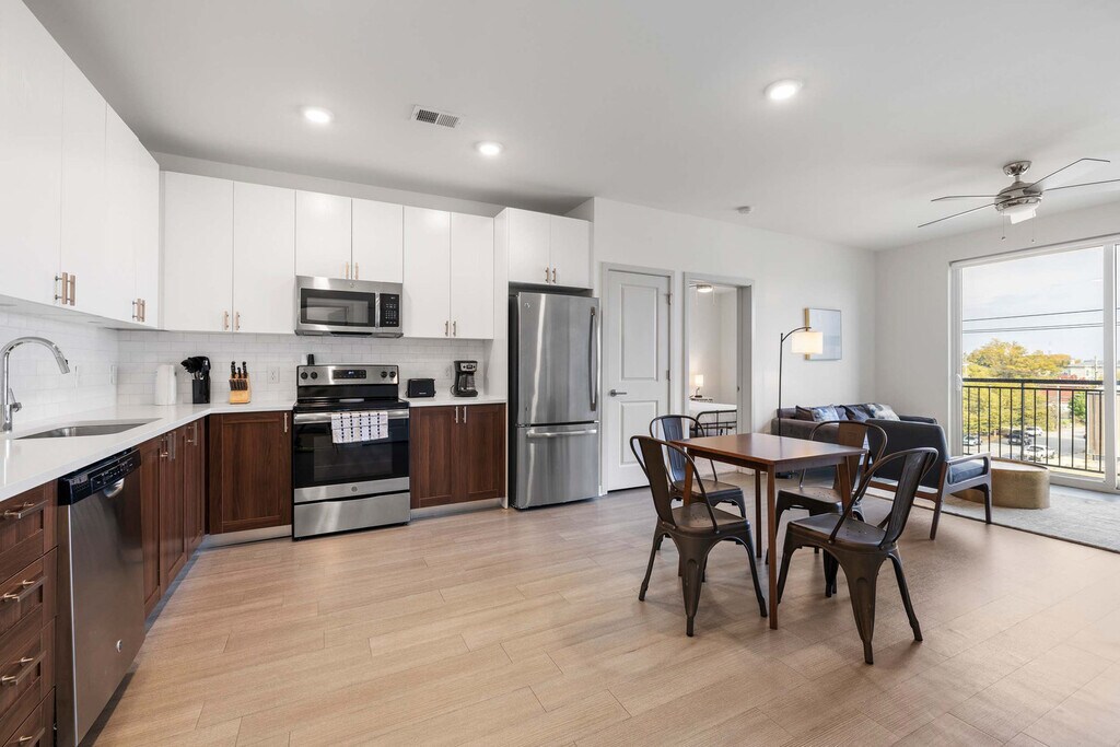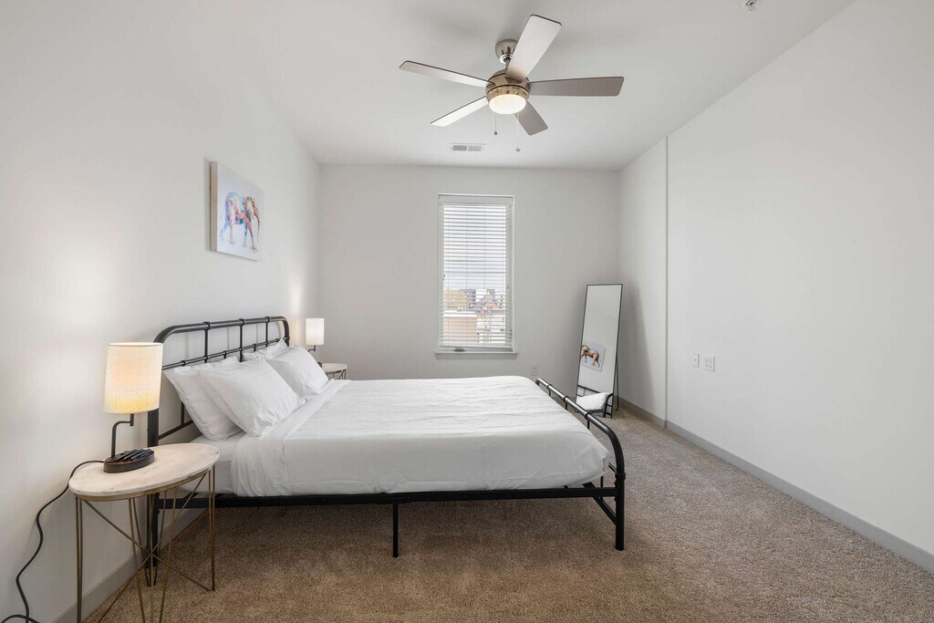 The advertised rate of $3,290/month is the lowest available price, based on a 30 day(s) stay with a move-in date of August 1, 2026. Rates vary depending on the duration of stay, season, and other parameters. For exact pricing and additional pricing components, please visit our website and enter your desired move-in and move-out dates. The rate is applicable when billed upfront; it can be higher if billed in multiple payments. Feel at home in this cozy apartment located in Louisville's East Market District. This apartment is suitable for a family, group of friends, or business travelers. This apartment features soaring 9-foot ceilings, stainless appliances, custom cabinetry, elegant tiling, and modern decor. The fully equipped kitchen and smart TV with streaming apps installed provide all the amenities necessary to enjoy your stay. Complimentary coffee is provided. Gym, pool, pet park, clubhouse, and lounge access are included. Max 2 pets are allowed (40lbs combined) and an additional $100-300 pet fee based on stay length will be collected separately. Locals call the hip, affluent East Market District as NuLu and the best place to stay in Louisville. This neighborhood is a dining hub with eateries spanning upscale New American cuisine to casual BBQ, plus stylish bars pouring craft beer and bourbon. Shops sell vintage clothing, women’s fashion, gourmet eats or restored furniture. Contemporary galleries stay open late for the monthly First Friday Hop street party, with art shows, live music, shopping and street food. Smoking of any kind is not permitted within or outside of the apartment, including balconies, patios, or common and/or parking areas. Any sign of smoking is a violation of the stay agreement, which may result in immediate termination and recovery fees beginning at $500. There is a $500 penalty for removing smoke detectors and a $200 penalty for lost key fobs. No weapons or drugs are allowed, and police will be called for violating this rule. Guests must agree not to disturb neighbors at all times during the stay and must observe quiet hours from 9pm-8am each day. Check-in is at 4 PM and check-out is at 11 AM, with a $75/hr late fee. No outside guests are allowed without permission. One towel is provided per guest per stay. A valid photo ID is required to complete the booking. The minimum age requirement of the primary person booking should be 22 years old. Long-term guests (30 days+) will be subject to a background search and credit check. Registration Number: LIC-STL-25-00960 [SI]
