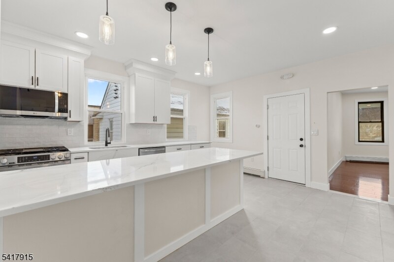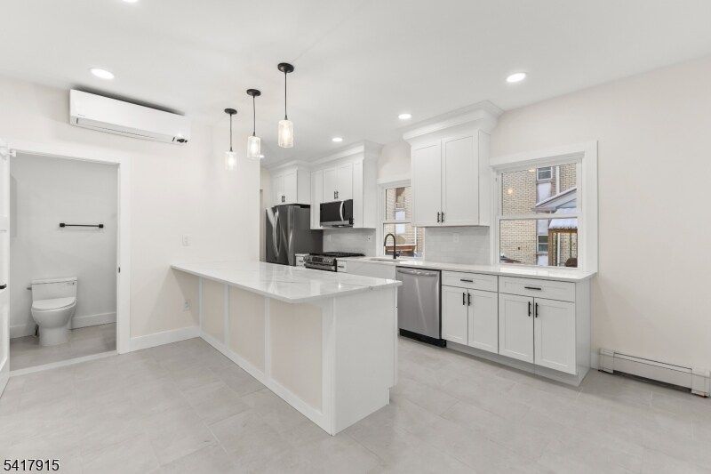 This beautifully renovated 3 Family house features three 2-bedroom, 1-bath units, each on its own floor, stylishly combining modern comfort and old-world charm. Each unit has its own electrical and gas meters, new energy-efficient windows, tile, and hardwood floors, all new appliances, including a washer/dryer in the unit, mini split a/c. ceiling fans and recessed lighting throughout.The First-floor unit w/separate entrance, 9' ceilings, a stunning new kitchen with luxurious quartz countertops, a spacious center island perfect for meal prep or casual dining, a pantry, and sleek cabinetry for ample storage.The second-floor unit also has 9' ceilings, a stunning kitchen, a washer/dryer, and front porch. The 3rd floor is slightly smaller, with a new kitchen and bath. This location offers the convenience of being close to public transportation and a vibrant downtown, making it perfect for both commuting and leisure. Don't miss the opportunity to make this upscale rental property your new home!