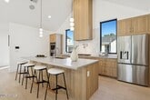 Discover a bold blend of high-performance design,intuitive technology,and modern luxury,This 4-bedroom,3.5-bathroom spanning 2,696 square feet,This residence offers premium finishes,cutting-edge automation,and exceptional energy efficiency. Step inside a thoughtfully designed layout with vaulted ceilings,an open yet functional flow,and an abundance of natural light. The open-concept living space flows seamlessly with a chef's kitchen featuring quartz countertops,gas cooktop and an oversized island. The primary suite is a private retreat,complete with a spacious ensuite bathroom featuring a freestanding soaking tub,glass-enclosed shower,dual vanities,and a generous walk-in closet. Each additional bedroom is designed with comfort in mind,offering ample space.